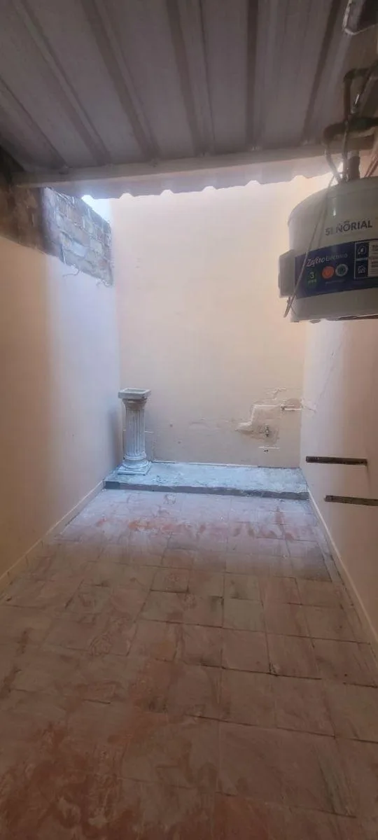 Ground-floor studio PH with private entrance and a small patio. It has a kitchen-dining area, a bedroom with a wardrobe, and a bathroom, plus a patio with a laundry area. Initial rent is ARS 350,000, with an adjustment every 3 months based on inflation (IPC).