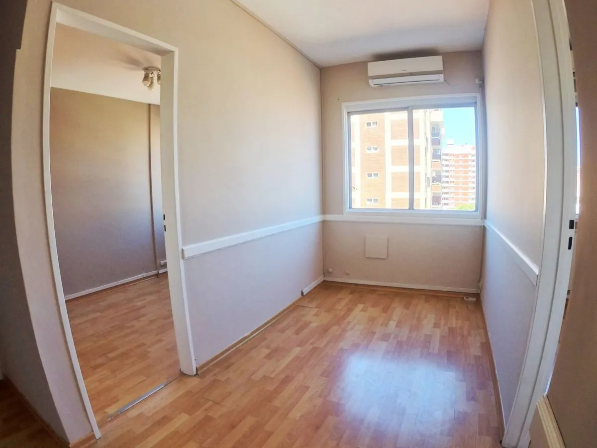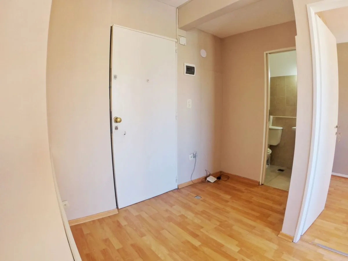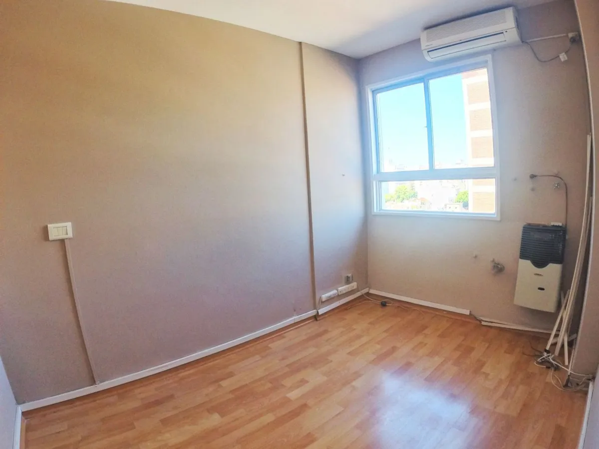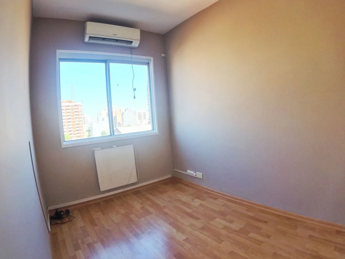 Studio apartment in Ramos Mejía, for sale or rent, suitable for professional use. The space is divided into a reception area with floating floor, two private rooms with floating floor, and a toilet, with split air conditioning. Location is described as a few metres from Av. de Mayo and two blocks from the station.