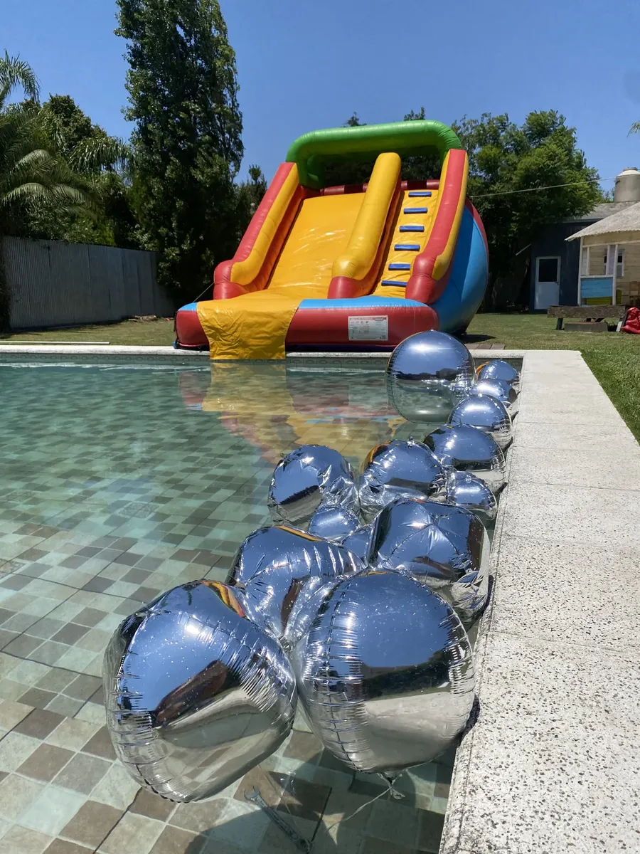 Quincho rental in Villa Luzuriaga for events, with capacity for up to 30 people. The property includes an air-conditioned room, pool, grill, and a large park, plus tables, chairs and dishware. Additional amenities include an electric heater, electric kettle, fridge, and freezer, with extra options such as water slide, inflatables, pool games, tejo and foosball, and living games and gazebos. Rental is only by the day (11:00 to 19:00 or 12:00 to 20:00). The price is stated as consultable and depen