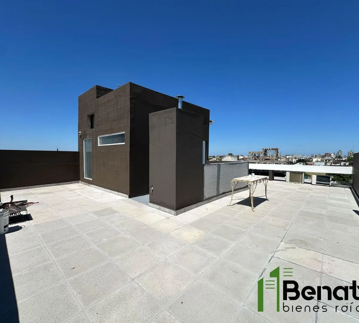 Studio apartment with a front balcony. It is delivered with air conditioning (hot/cold) and an electric cooking appliance. The building has a lift and a shared roof terrace. The unit is on Av. Mosconi 900, 200 metres from Av. San Martin, with direct access to Av. Gral Paz. Building fees, taxes and utilities are stated as per the latest available information.