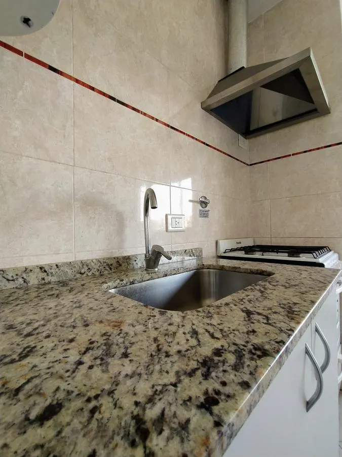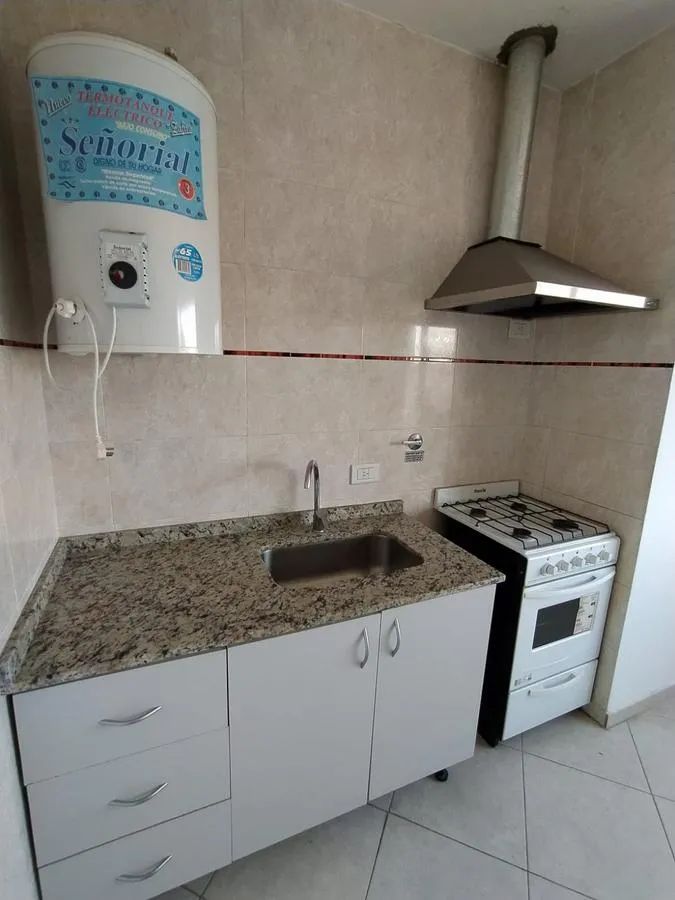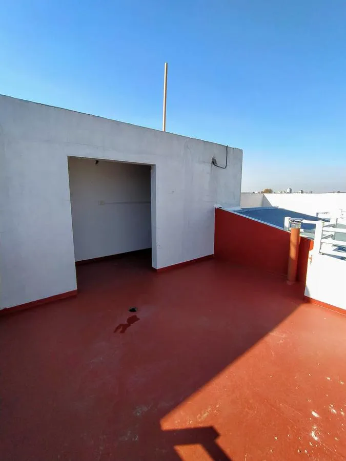 Studio apartment on the second floor accessed by stairs, street-facing. One main room with a kitchenette including a base cabinet and cooking appliance, a full bathroom with bathtub, and a private, spacious terrace. Building fees are about ARS 80,000, including AySA and ABL. Located in Villa Luzuriaga, around 100 metres from Av. Santamaría and about 500 metres from Calle Arieta, both commercial areas with public transport.