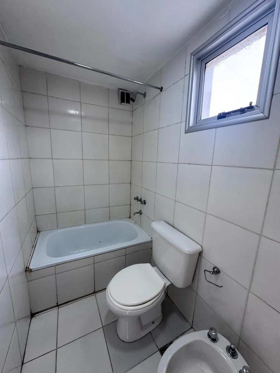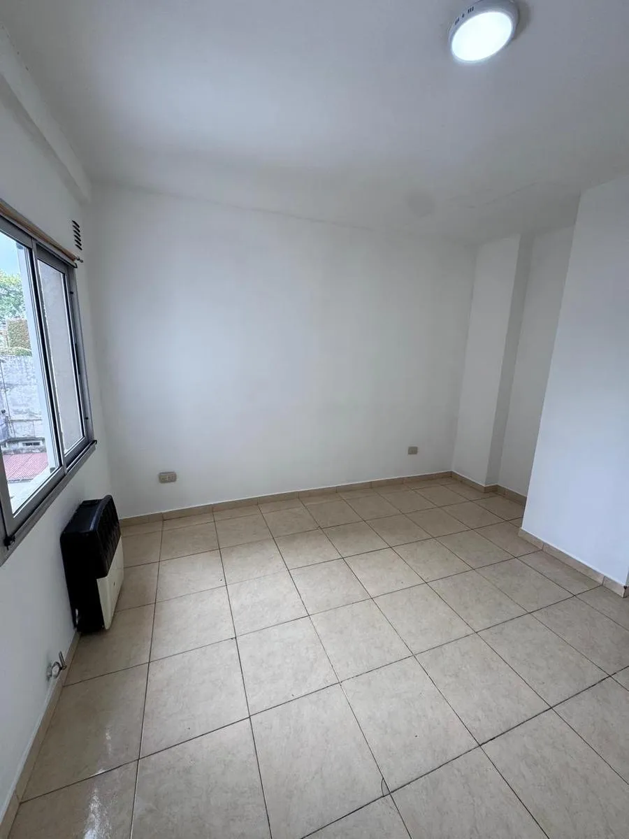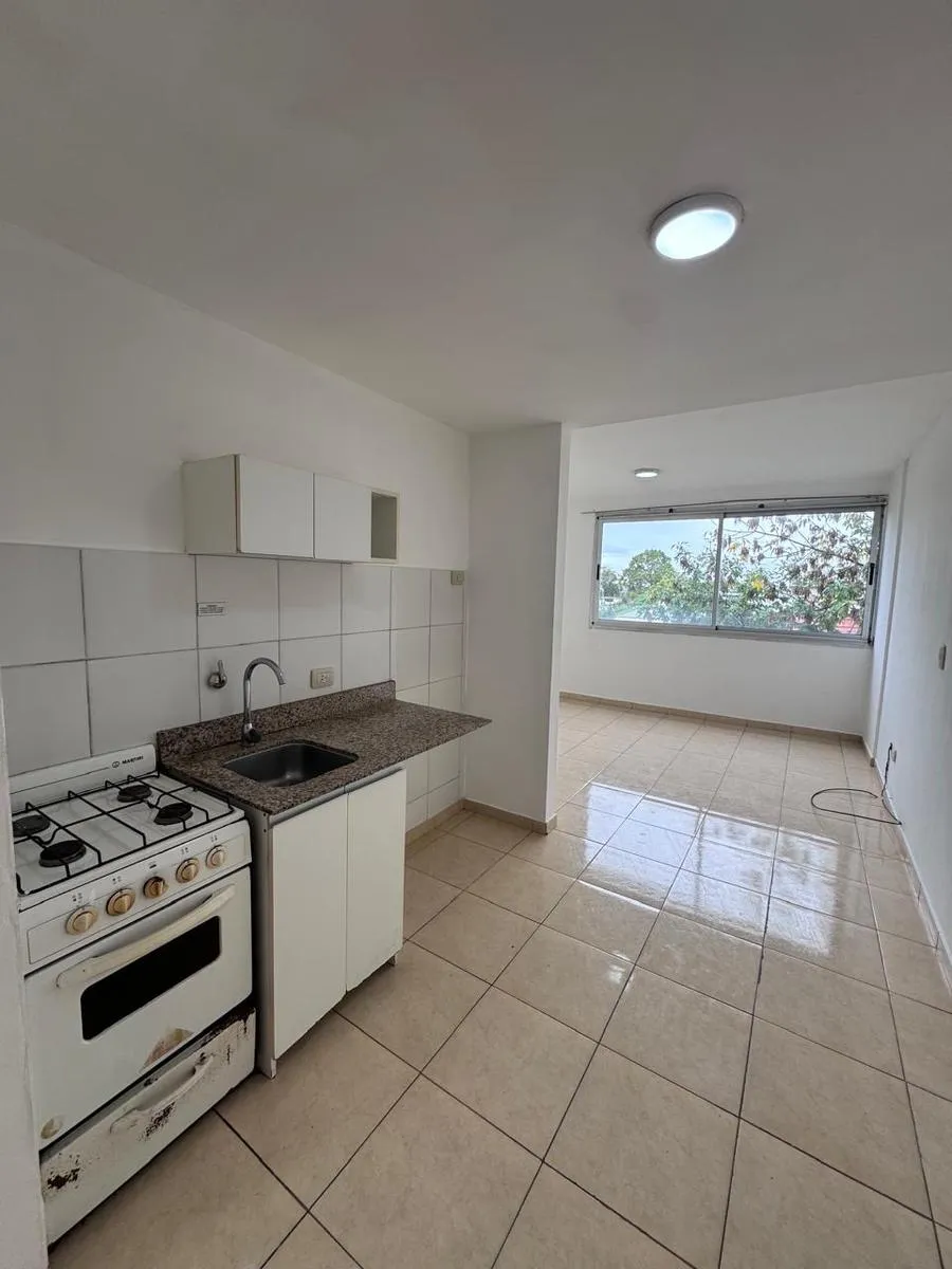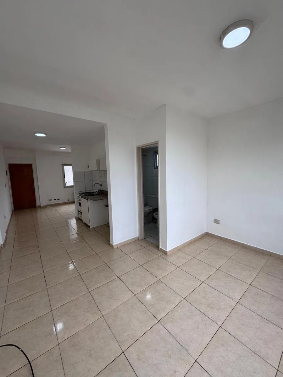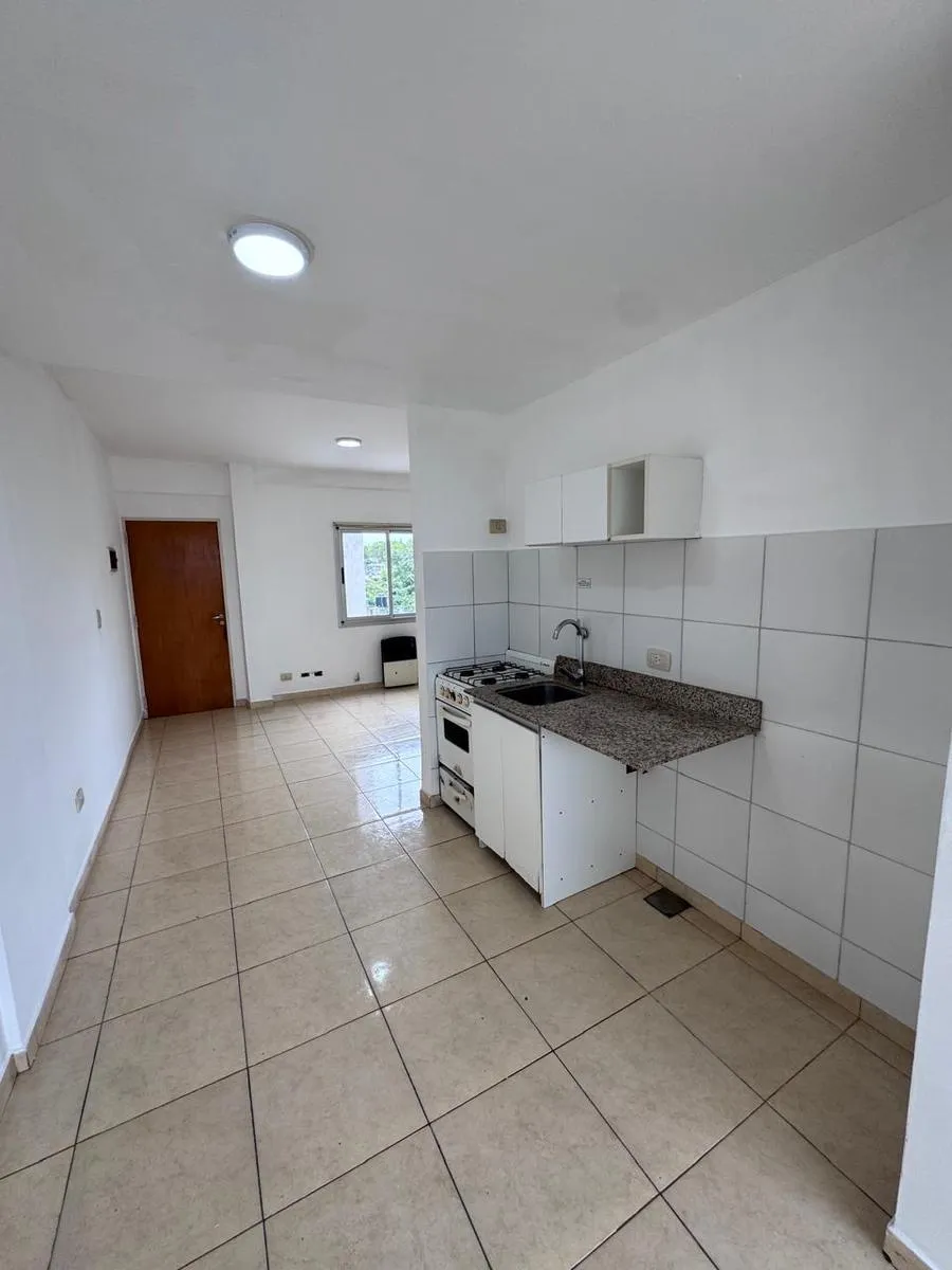 Studio apartment with kitchen-living/dining area, space for a washing machine, and a full bathroom. Building fees (expensas) are $75,000. Rent is $400,000 with a quarterly increase based on IPC.