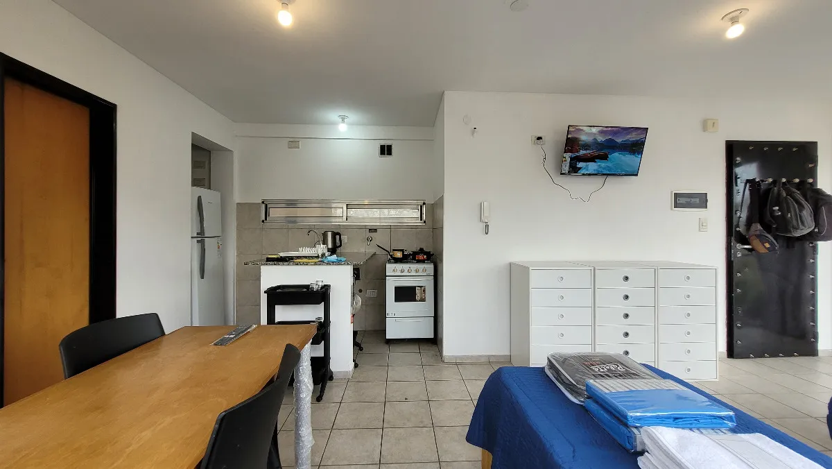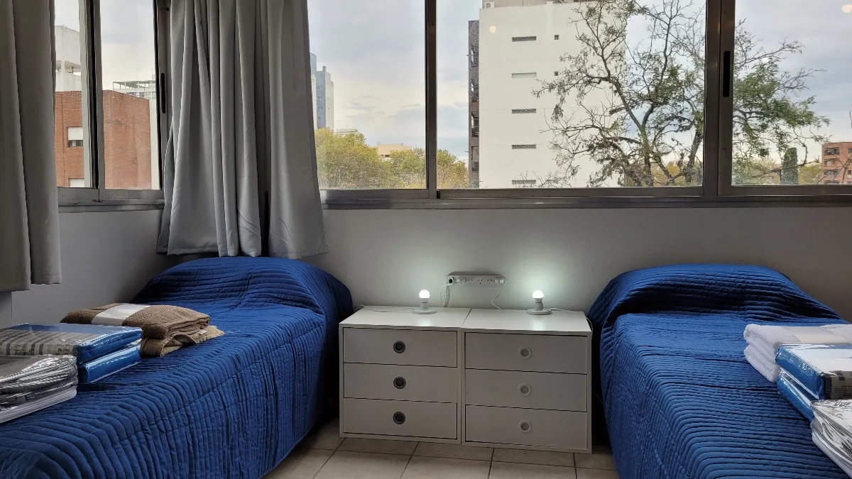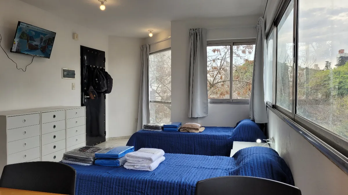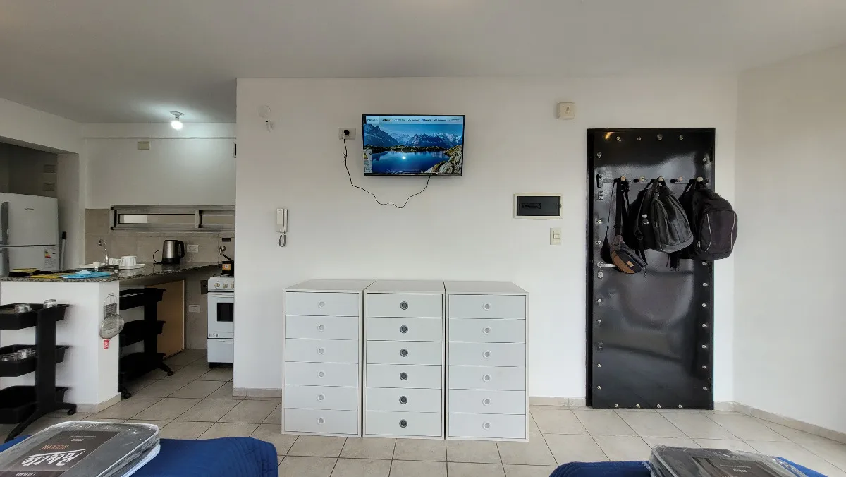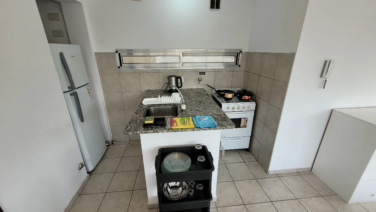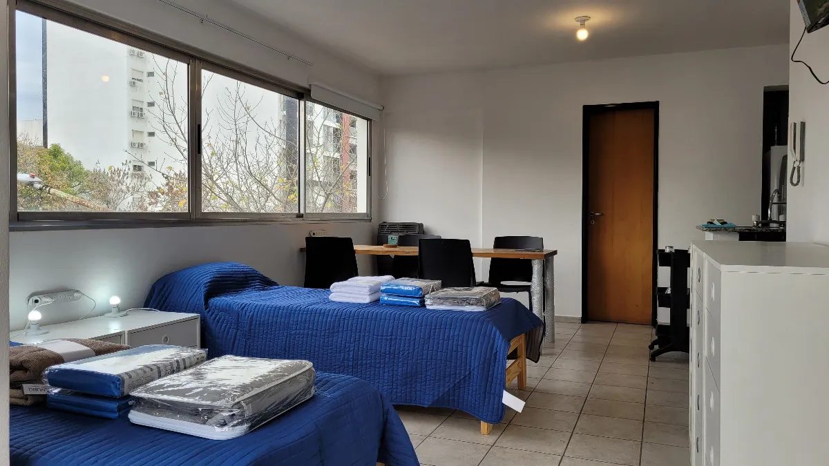 Studio apartment on the 3rd floor with a view of the plaza, equipped and furnished for 2 people. The rent includes internet and water; gas and electricity are paid according to usage. It is delivered with bed linens and towels, tableware and kitchen utensils, a fully equipped kitchen, and household appliances.