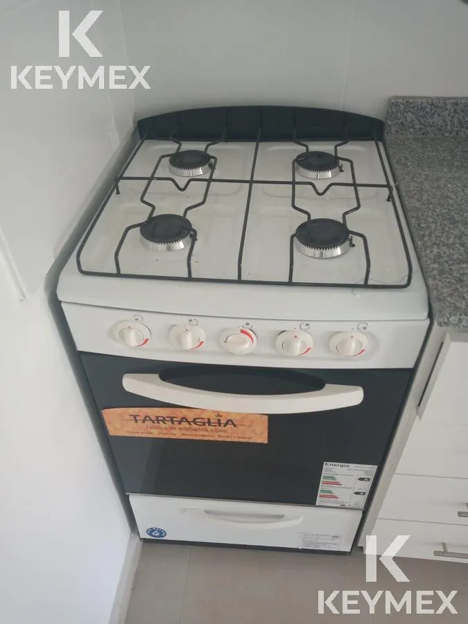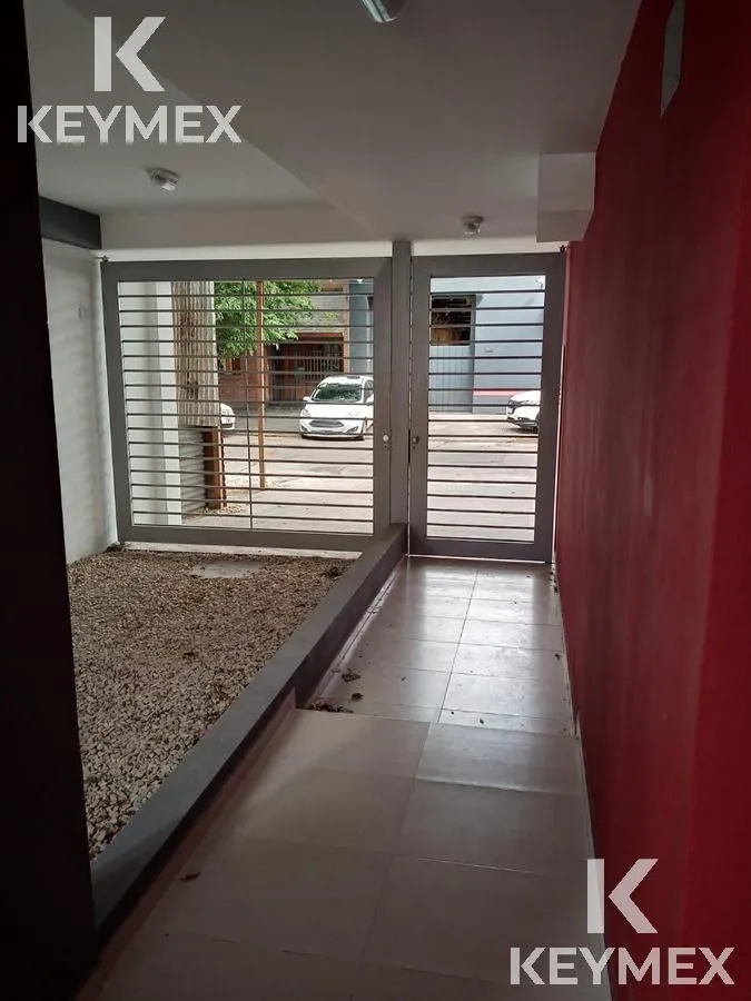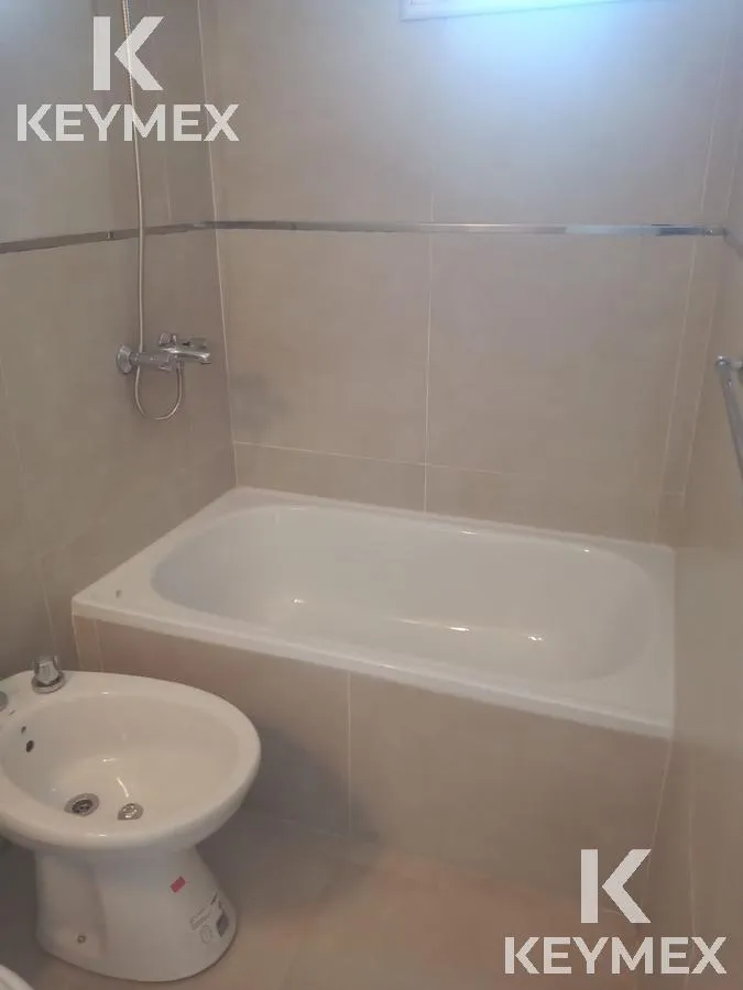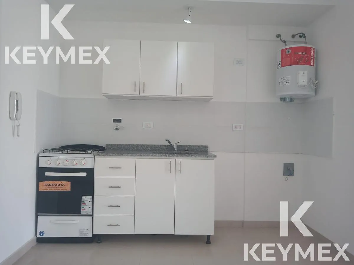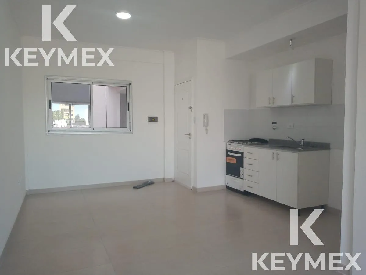 Studio apartment for rent in Barrio Norte, located on 35 between 6 and 7. The unit has a single room with an integrated kitchen, storage space, a full bathroom with a bathtub, and a balcony. Lease is for 2 years, with quarterly rent updates based on IPC.