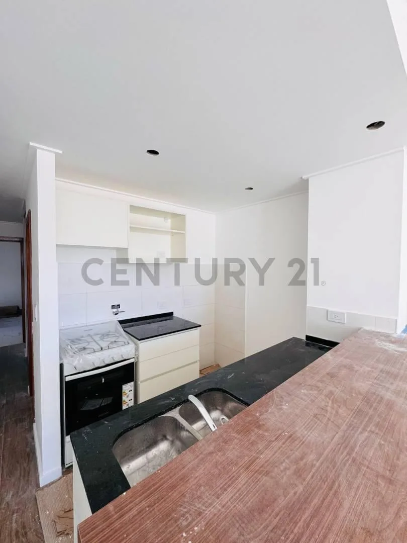 New studio apartment of 34.5 m² on the 2nd floor, courtyard-facing, with elevator. It includes a balcony, a gas kitchen with complete base cabinetry, built-in wardrobe interiors and blackout curtains. The bathroom has a glass screen, double-glazed windows and wood-effect porcelain tiles; there is pre-installation for air conditioning.