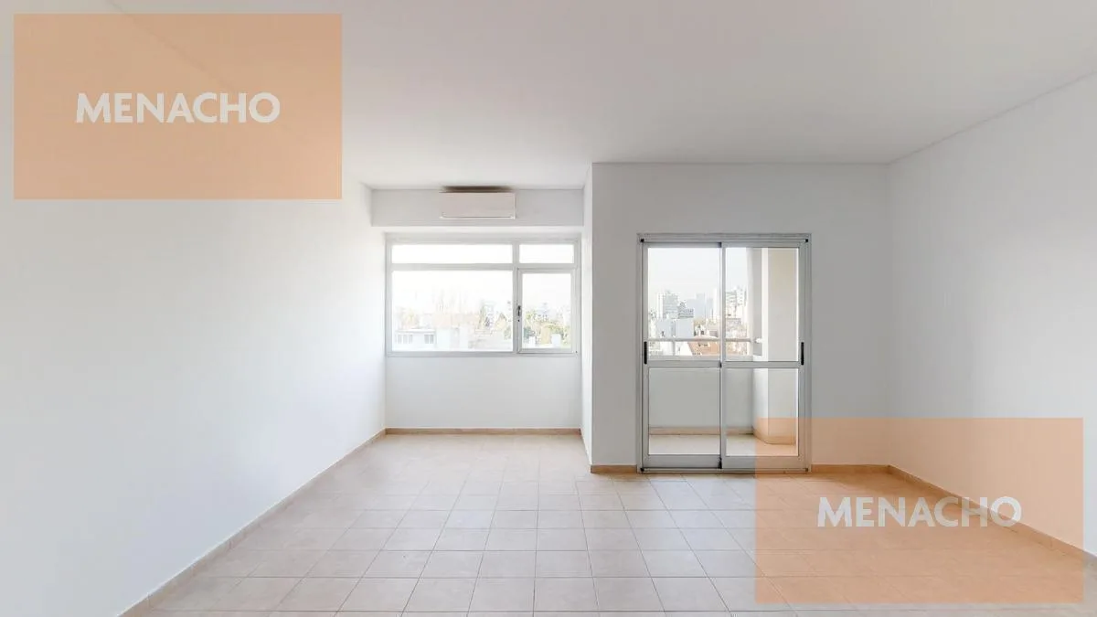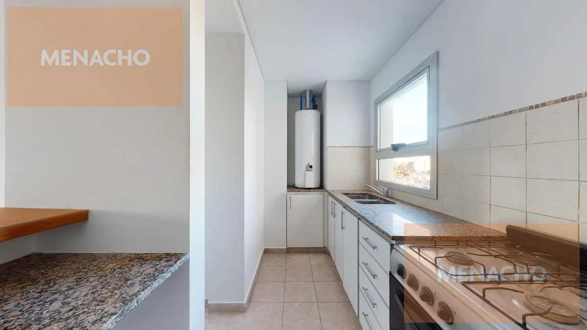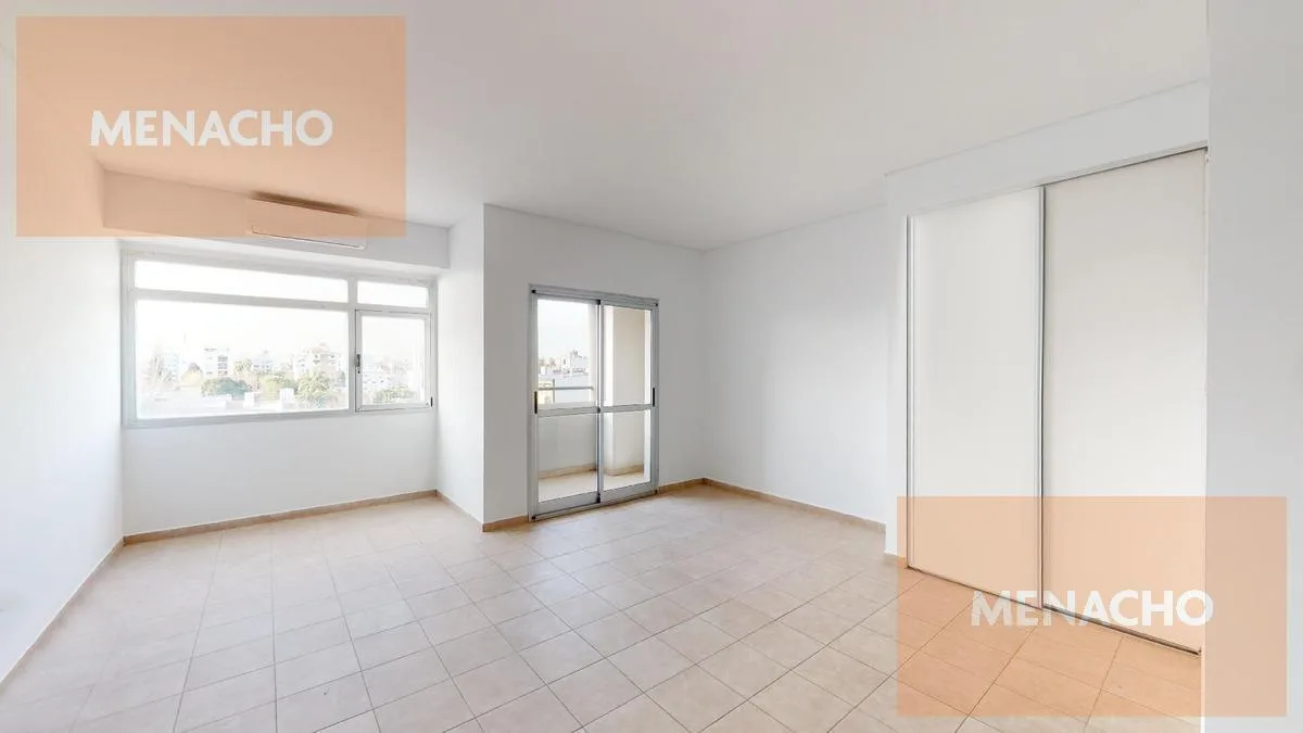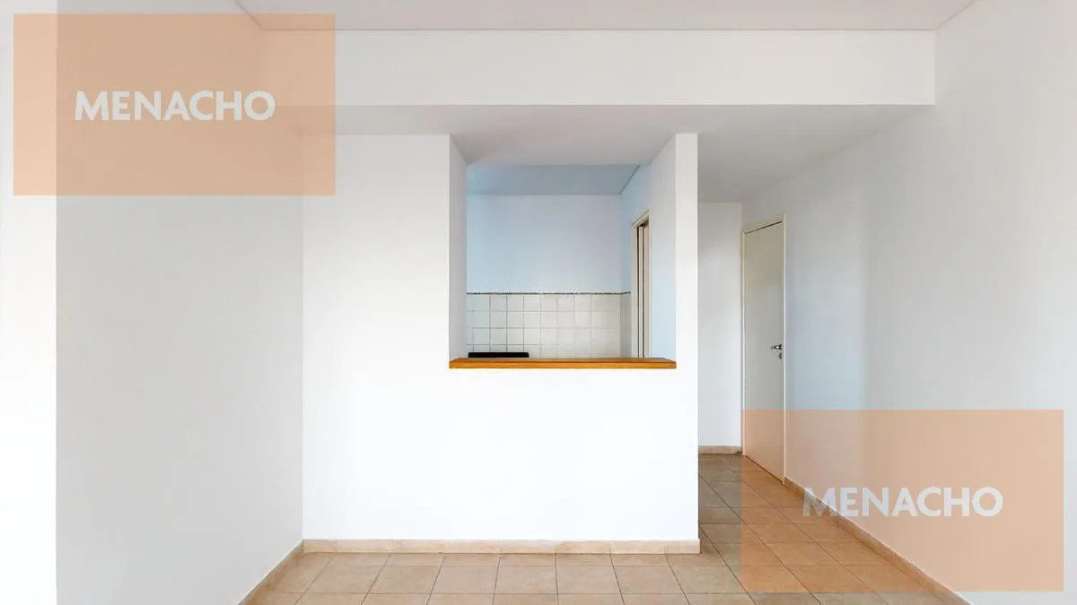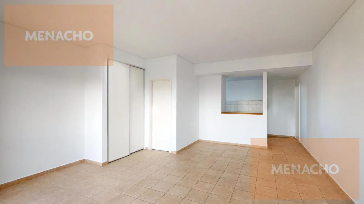 Studio apartment for rent on the first floor, street-facing. It includes a living-bedroom area, a kitchen, a full bathroom and a balcony. Estimated building fees are $55,000, including absa; the lease runs for 2 years with a quarterly adjustment.