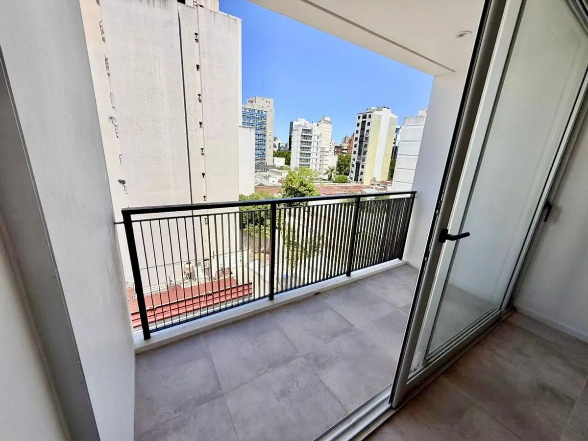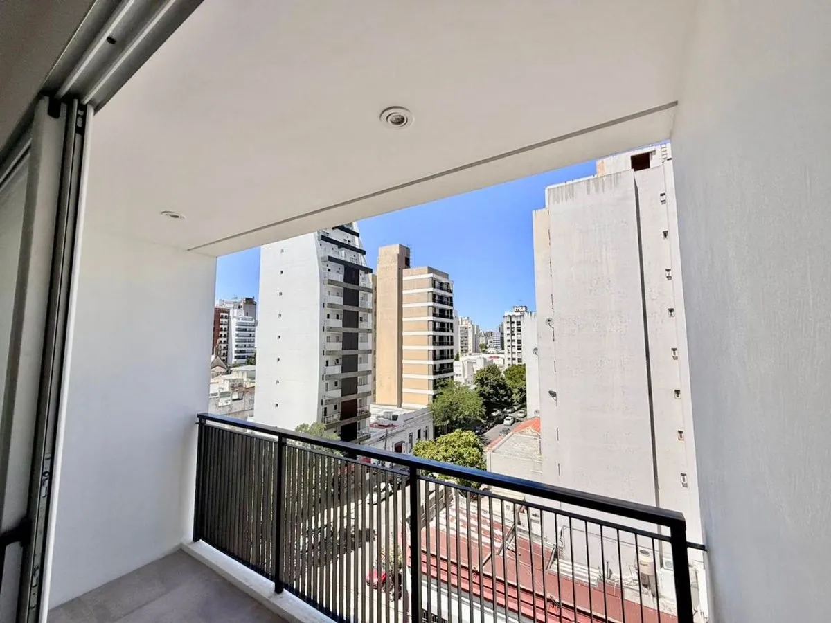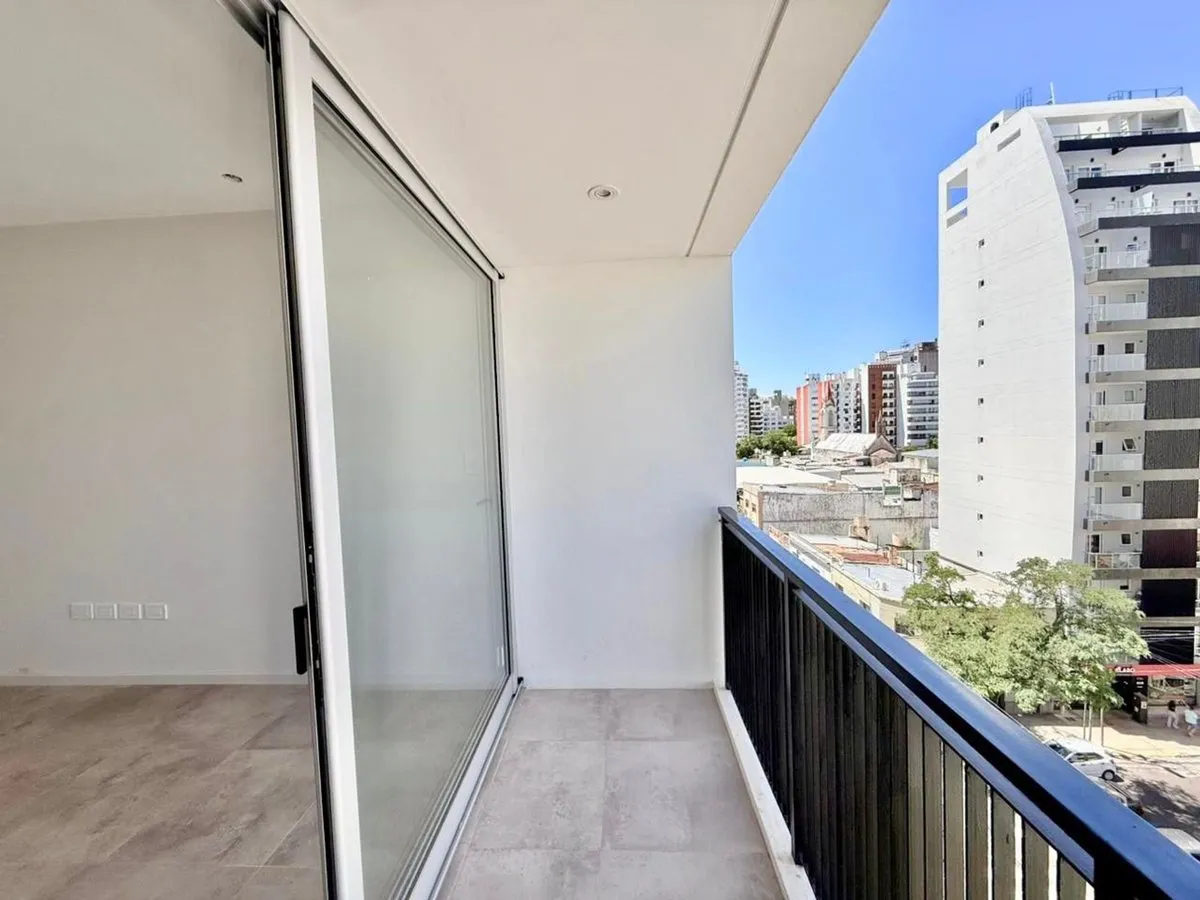 Brand-new studio apartment for rent in La Plata. Located on the 5th floor with elevator access and an individual balcony with an open city view. Integrated kitchenette, built-in closet, and a full bathroom. Building fees and utilities are not stated. Calle 45 between 12 and 13; 150 metres from Plaza Paso and 600 metres from the Catedral.