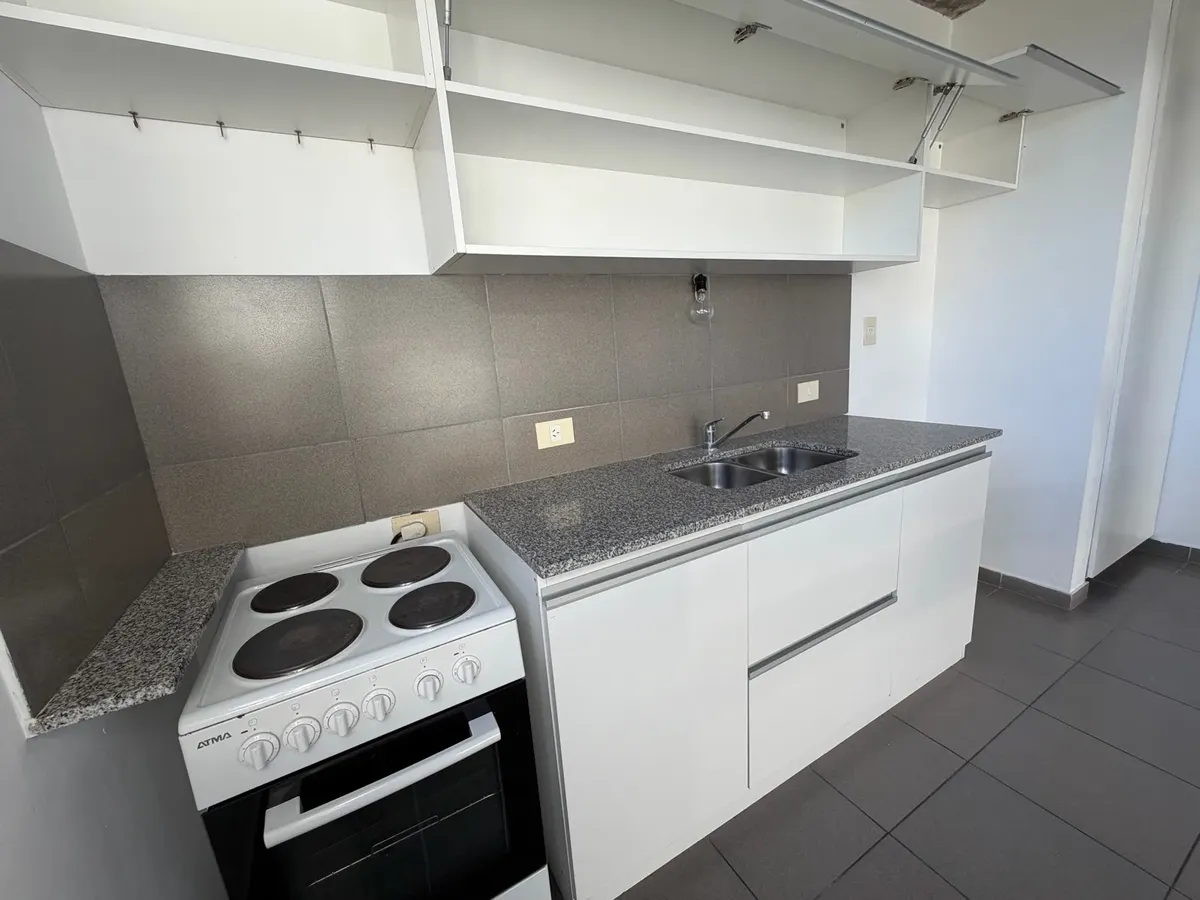Studio apartment with a division, very bright, in 3rd floor, street-facing and courtyard-facing. It has a living-dining area and a kitchen with upper and lower cabinets plus a breakfast bar. Full bathroom, all-electric setup, and air-conditioning pre-installation.