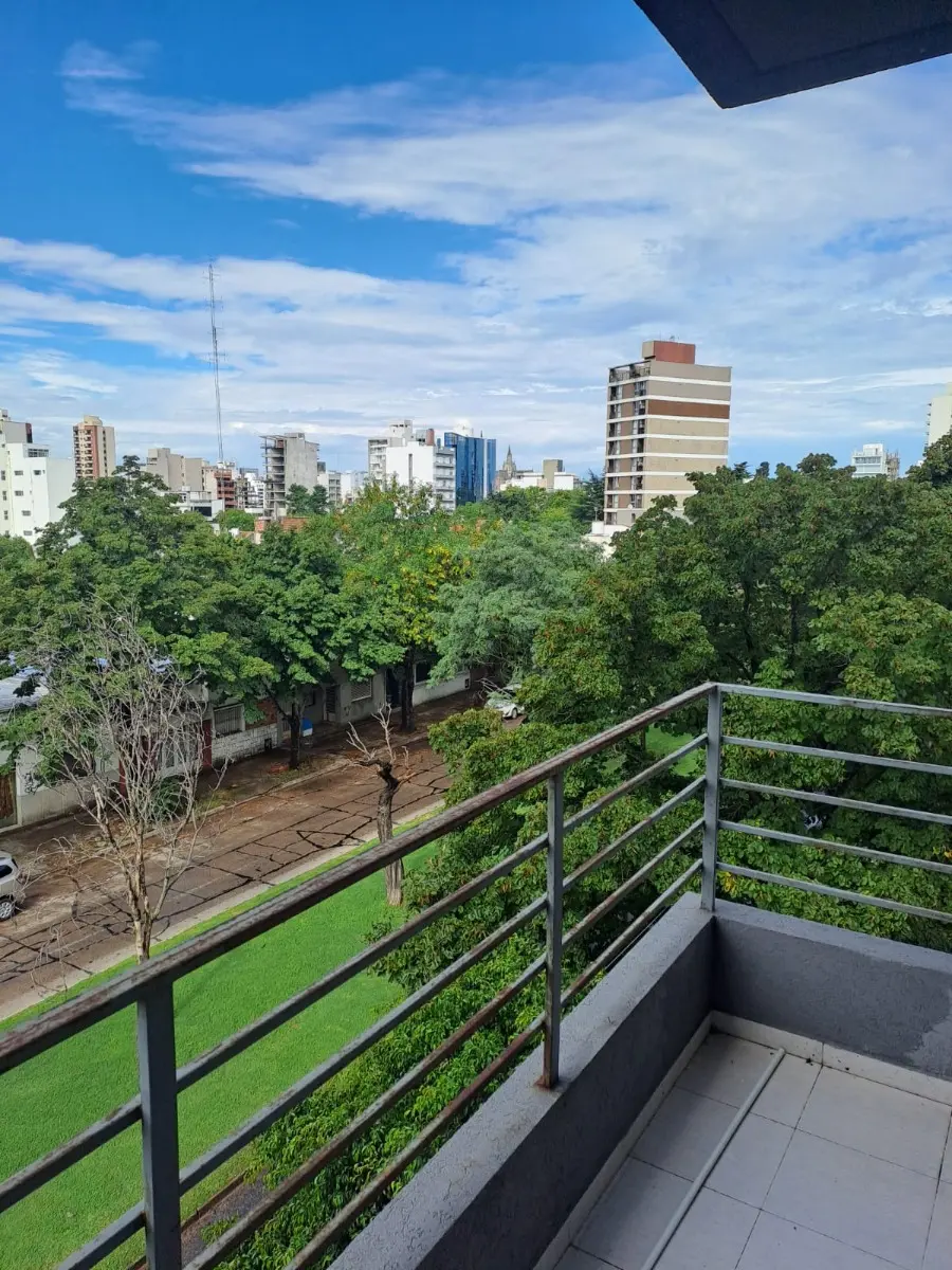 Studio apartment, 7 years old, street-facing, with a large L-shaped balcony. Kitchen with a window and a bathroom with a bathtub and vanity. Parking is possible.