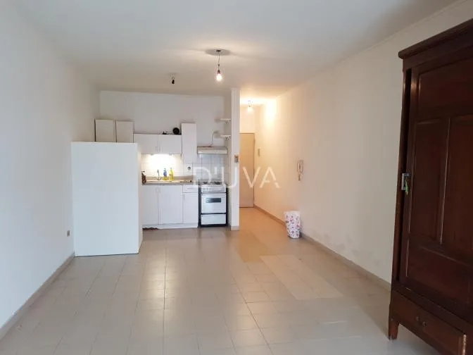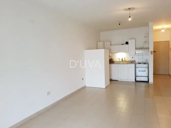 Studio apartment of approximately 36 m², courtyard-facing (contrafrente). Includes a fitted kitchen, full bathroom, separate laundry area, built-in wardrobe, a balcony and air conditioning (heating and cooling).