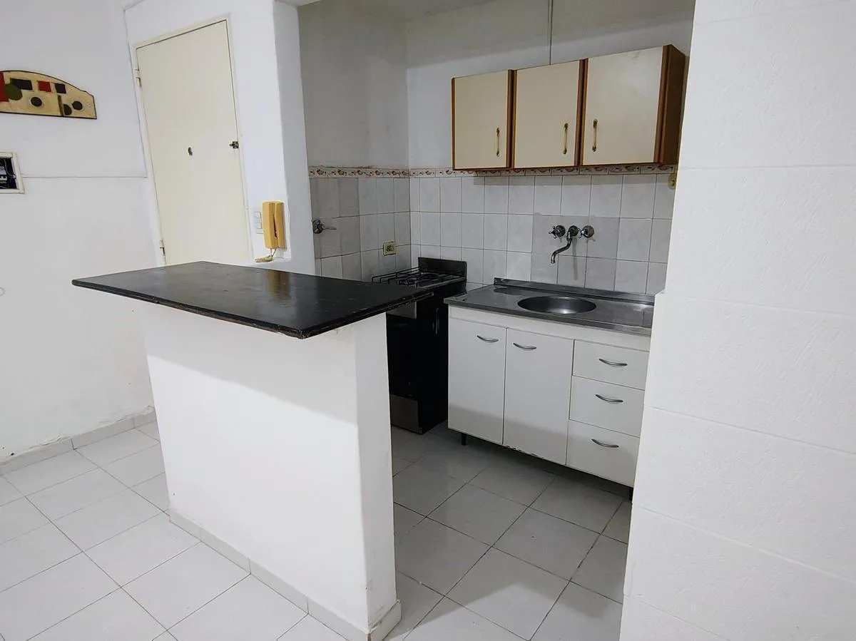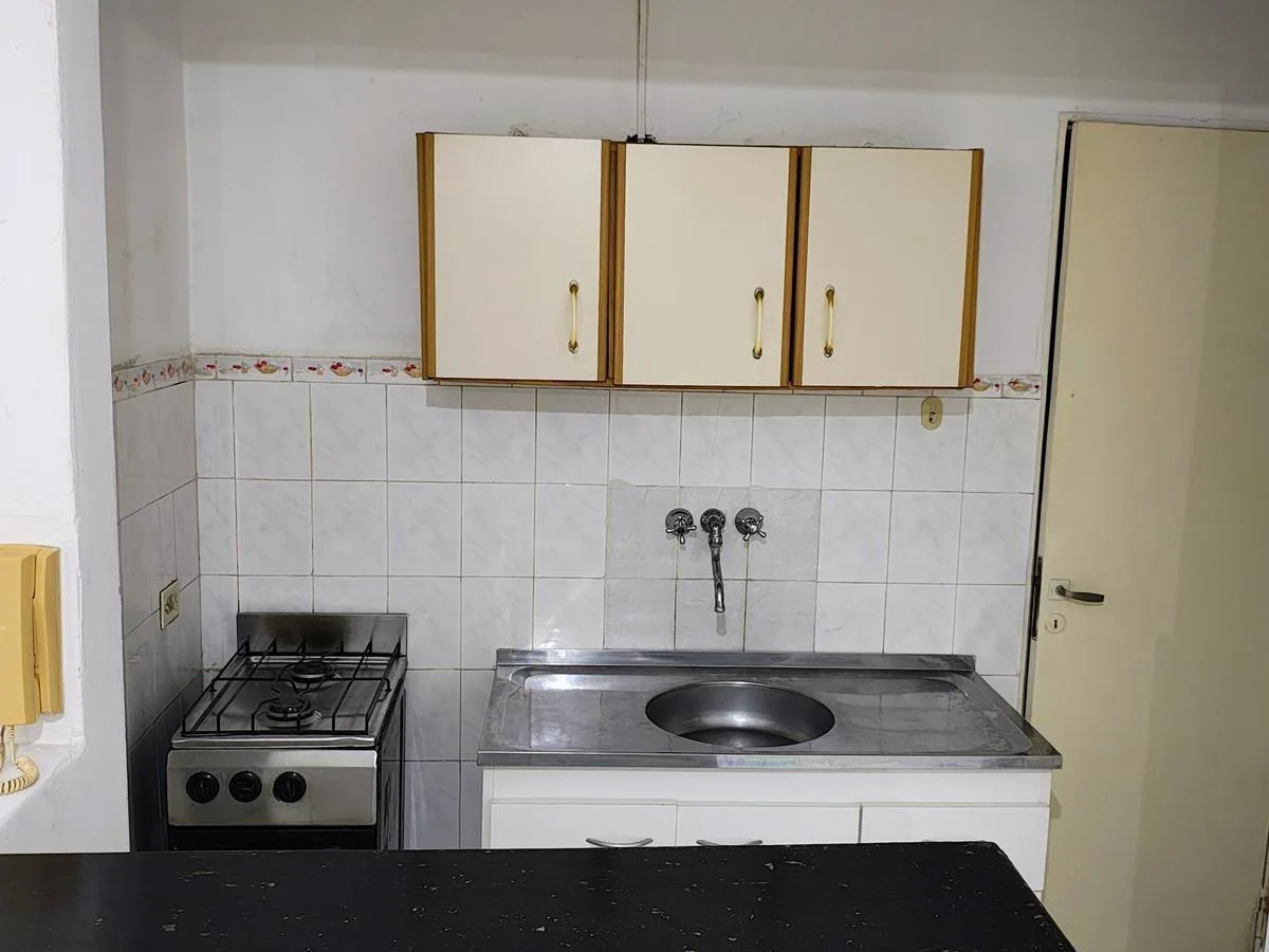 Ground-floor studio apartment in central La Plata, on Calle 46 between 8 and Diagonal 74. Single room with an integrated kitchen separated by a breakfast bar, courtyard-facing. Suitable for residential or office use.