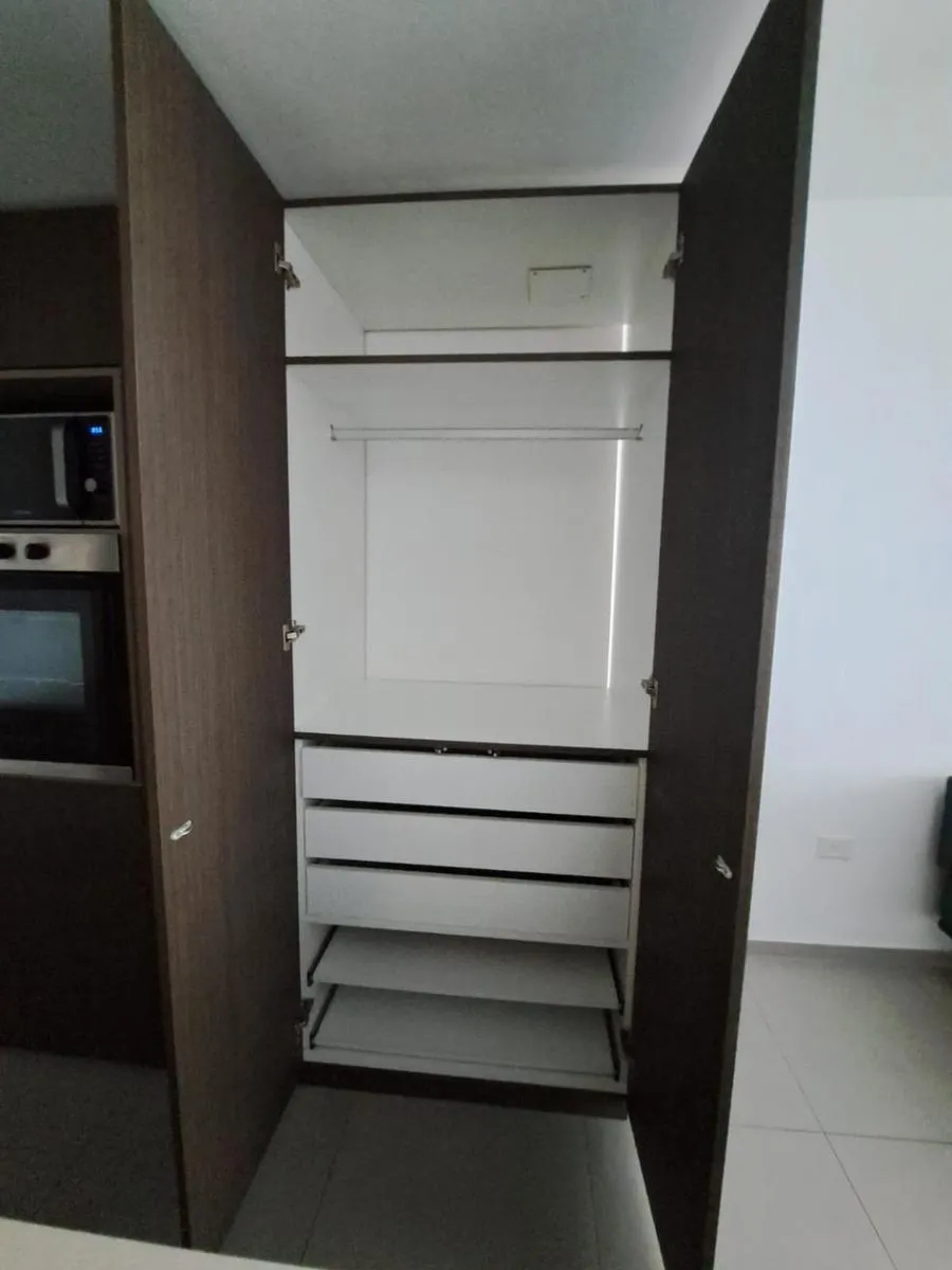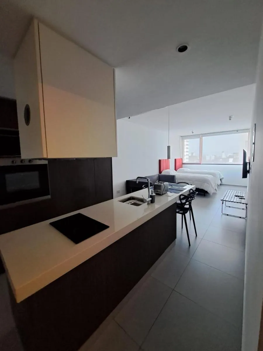 Fully furnished studio apartment, equipped for immediate move-in. The building has a roof terrace with a grill and a laundry area. Internet is included. Lease term is 12 months, with quarterly rent adjustments using ICL. The rent can be paid in pesos ($650,000) under a 12-month contract.