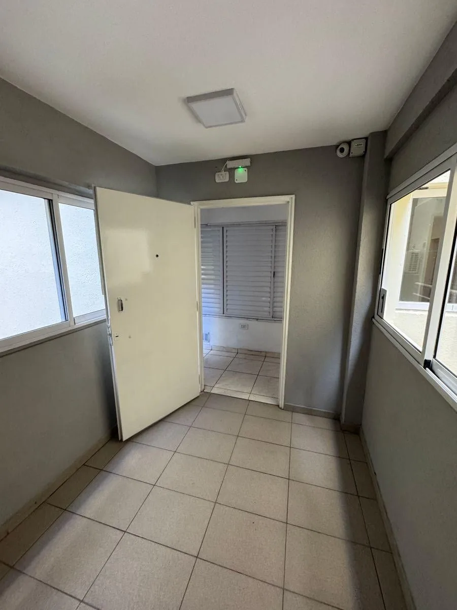 Studio apartment on the 1st floor accessed by stairs. The building has security cameras. The unit has ceramic floors, aluminium-framed openings, an integrated kitchen with upper and lower cabinets, a full bathroom, and a French balcony.