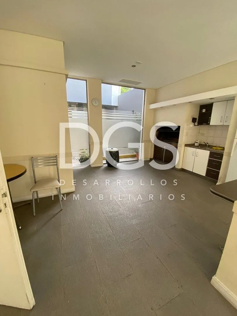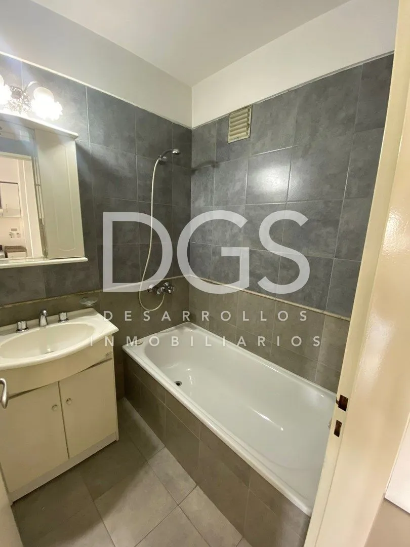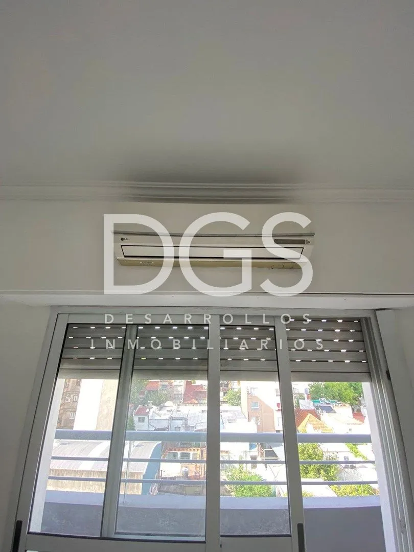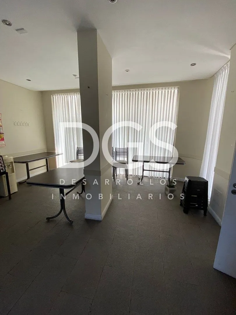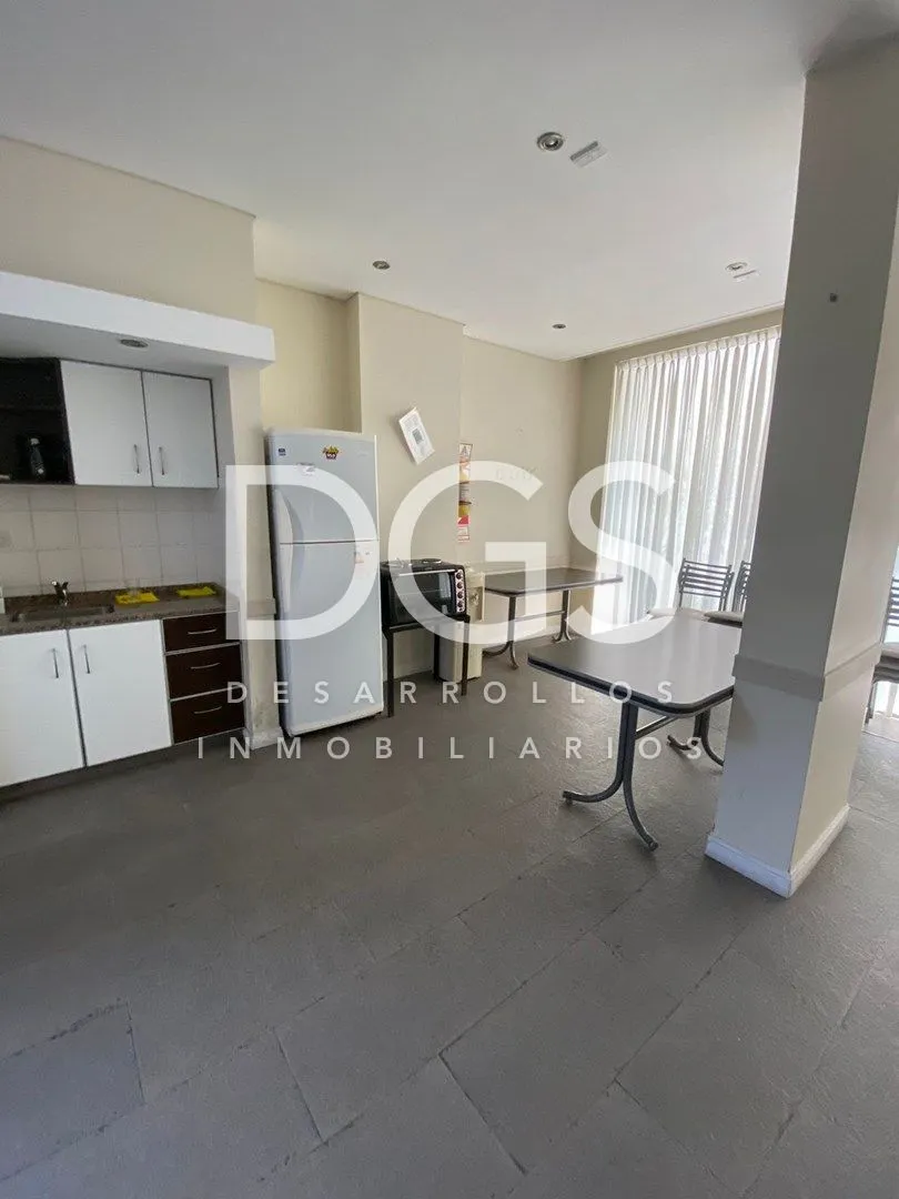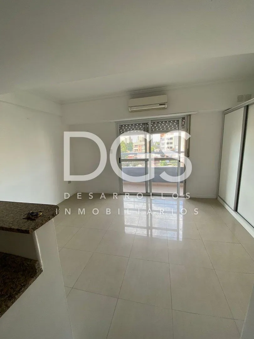 Studio apartment with ceramic tile floors. It includes a four-door sliding wardrobe with space for a television and split air conditioning (cold/heat). The kitchen has a breakfast bar and upper and lower cabinets. The full bathroom has a bathtub and storage furniture. The building offers a communal room (SUM), a gym on the ground floor and a storage room (baulera), with low building fees.