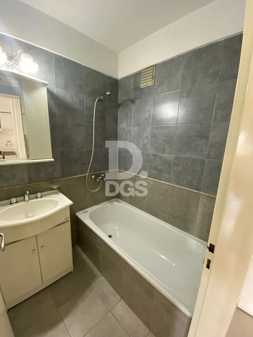 Studio apartment in central Lanús Este with ceramic floors and a four-door sliding closet with space for a TV. Kitchen with breakfast bar and upper and lower cabinets; large window with roller blind; full bathroom with bathtub and storage unit. Building amenities include a communal room (SUM), gym on the ground floor, and a storage room (baulera), with low building fees.