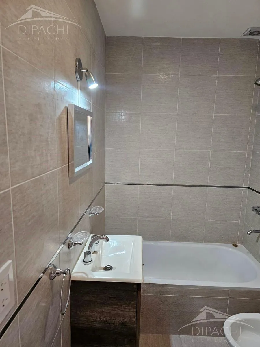 Studio apartment in Gerli, Lanús, on the ground level or first floor by stairs and street-facing. Delivered in 2022 and described as in good condition, in a building with 11 units total (4 per floor). It has a large window, an electric hot-water tank, full-electric kitchen appliances (Philco cooktop and oven), a complete bathroom with bathtub, and air-conditioning with pre-installation for heating; the kitchen includes under-counter and upper cabinets with a connection for a washer.