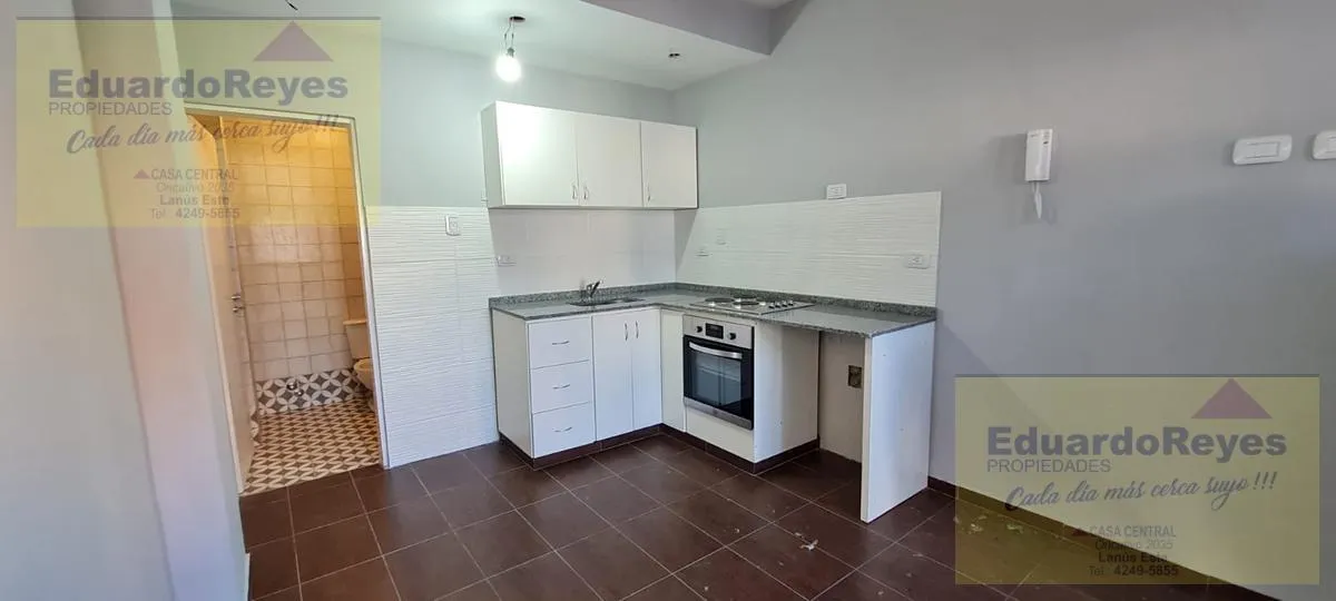 Studio apartment on the ground floor in Lanús Oeste, with an (assigned) parking space and private independent entrance. Layout includes a combined kitchen and dining area and a full bathroom, with a garage/patio area. Suitable for residential use or professional use.