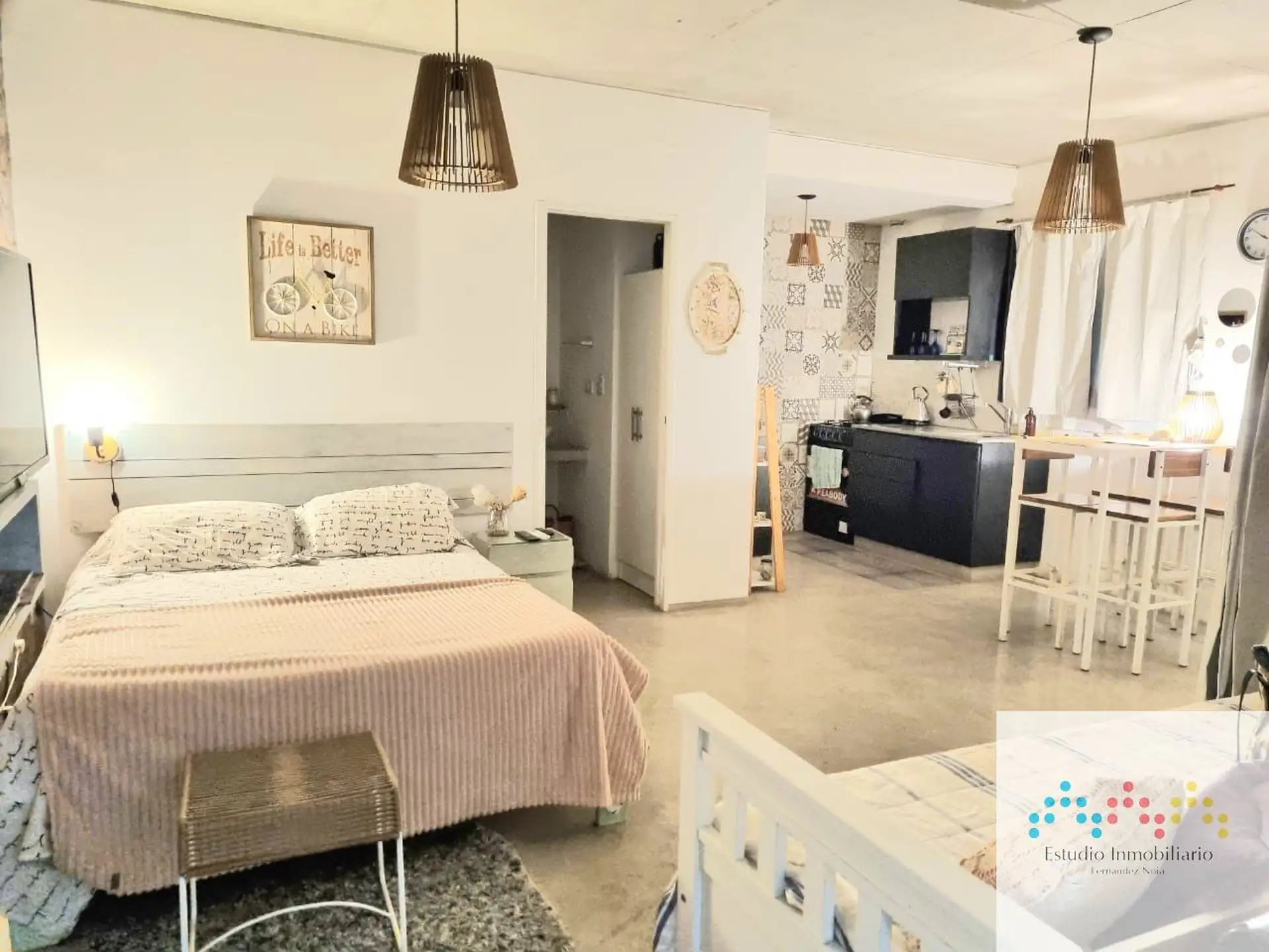 Studio apartment with 1 bathroom, equipped kitchen and a balcony in Remedios de Escalada, Partido de Lanús. Air conditioning and heating are installed. Gas cooktop with under-counter fridge, with running water and cable TV; WiFi included. Check-in at 15:00 and check-out at 11:00. Pets are allowed. Covered parking may be added for an extra fee.