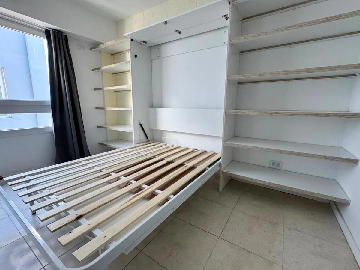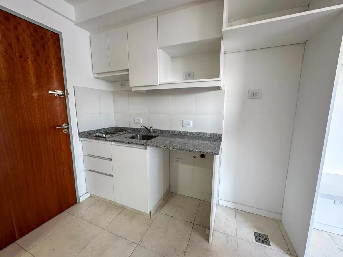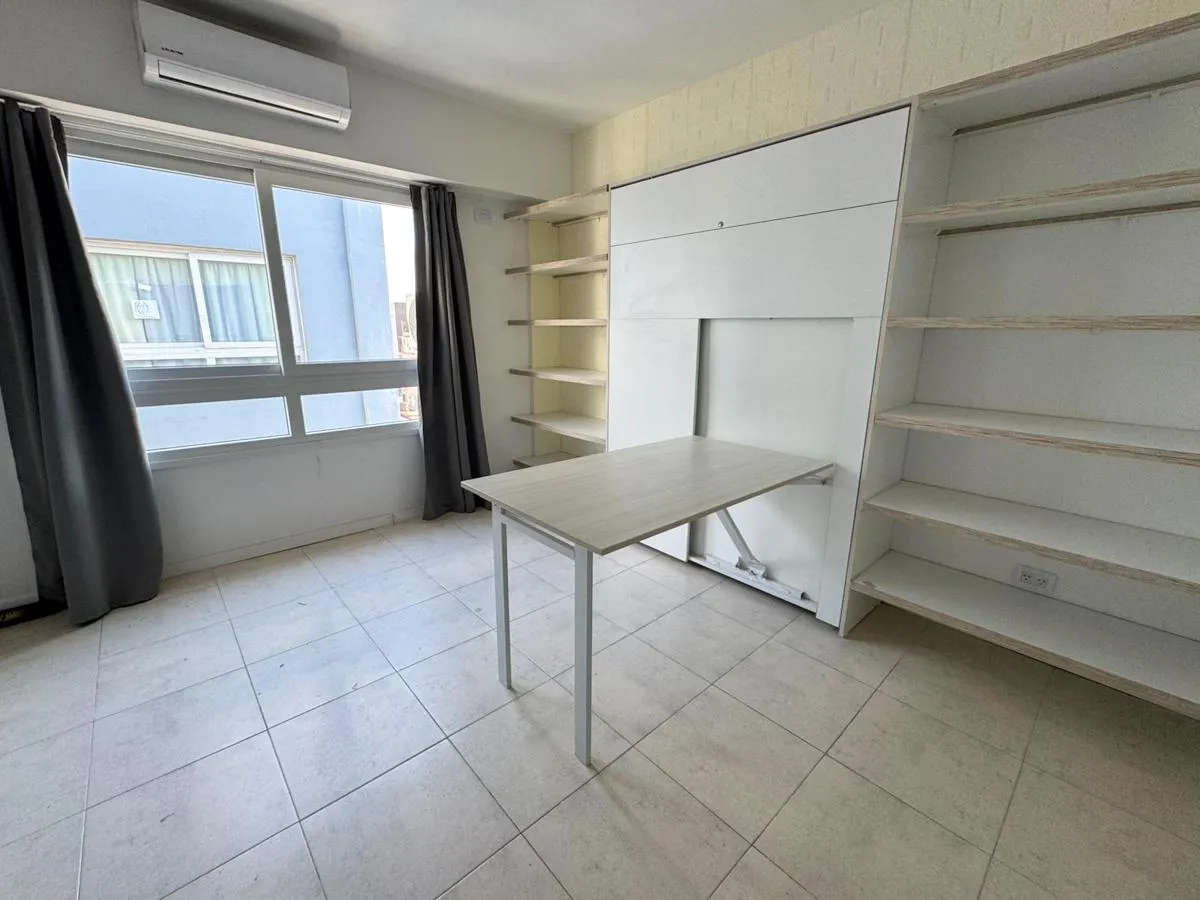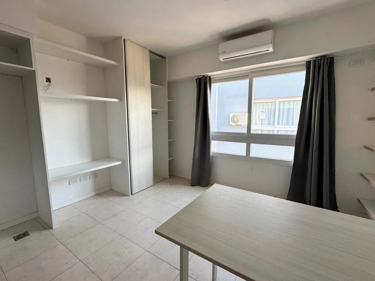 Studio apartment on the 6th floor in Liniers with good natural light. The unit includes a built-in wardrobe, an integrated kitchen with connection for a washing machine, full bathroom, and both heating and cooling air conditioning. Building access is available for people with reduced mobility. Building fees are described as low.