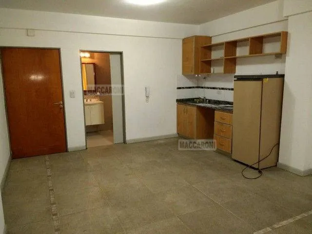 Studio apartment in Liniers, Buenos Aires. Street-facing with a balcony to the street. Includes a kitchenette with an anafe and a fitted cupboard.