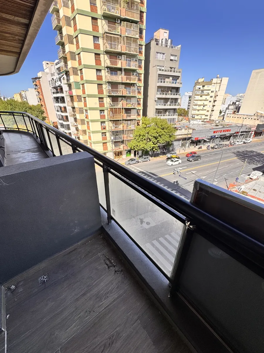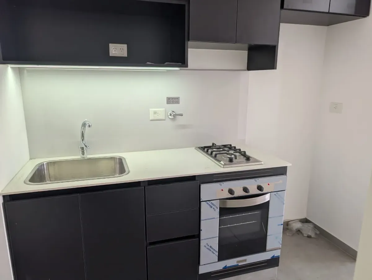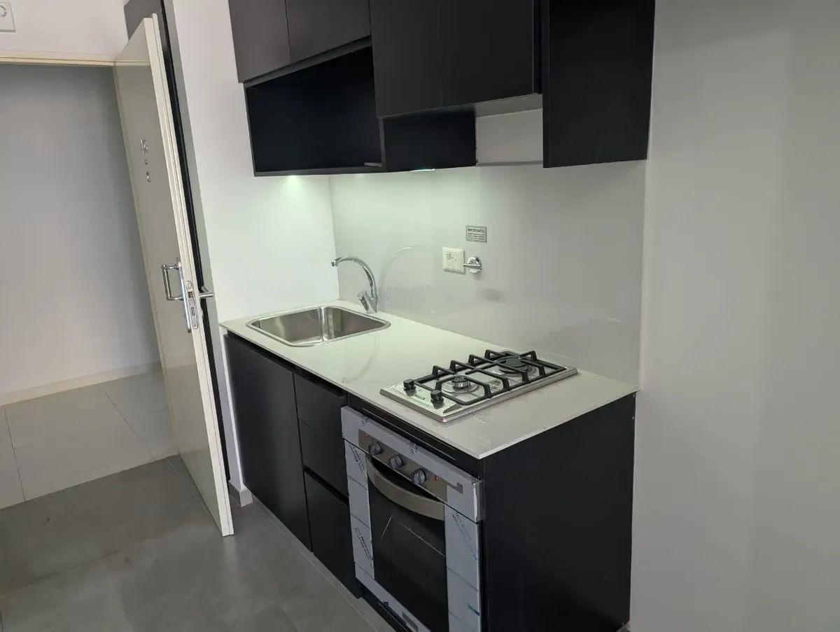 Studio apartment for rent in Villa Luro, brand new, with a balcony. Located on the 5th floor, lateral position. Integrated kitchen with a laundry area, full bathroom, and upper and lower cabinetry.