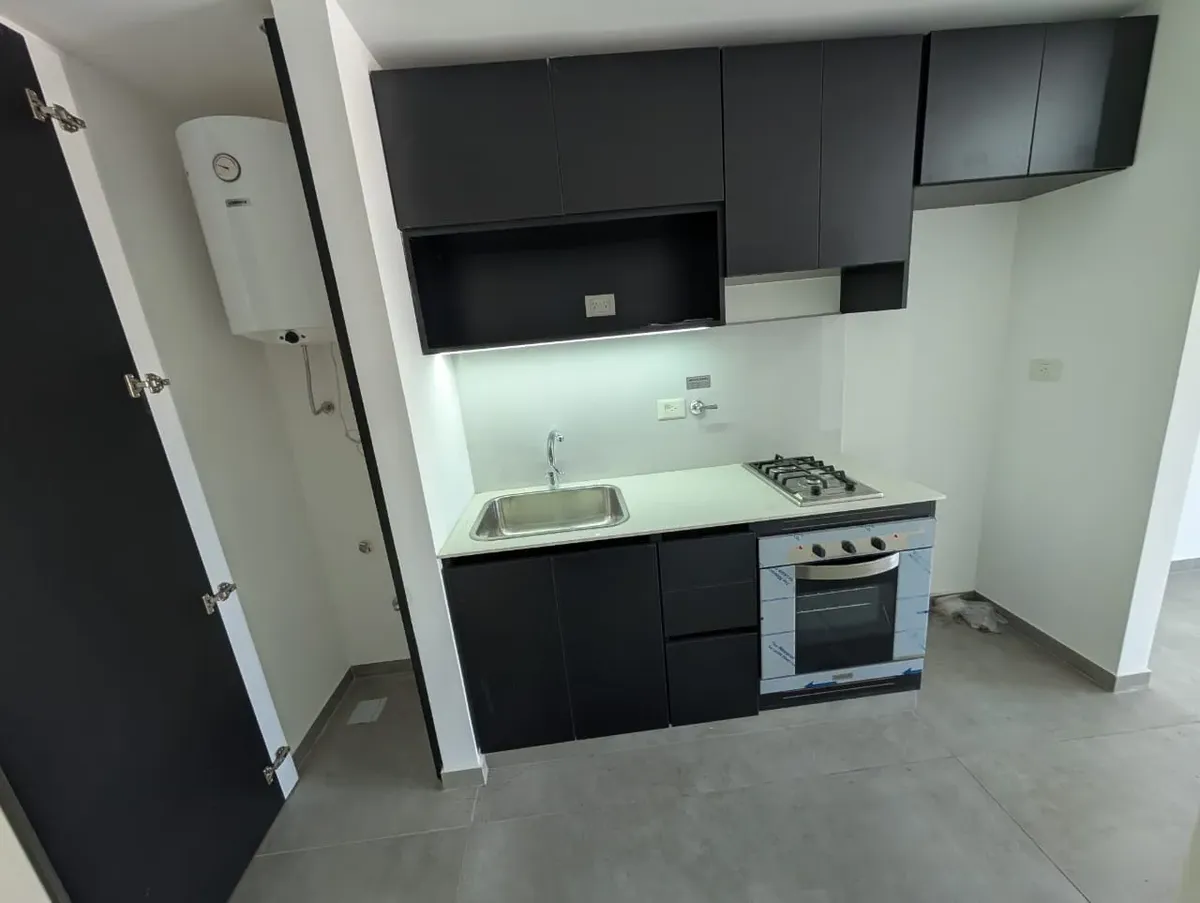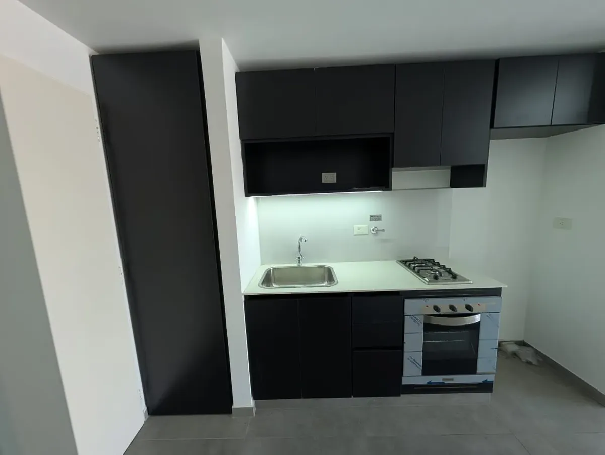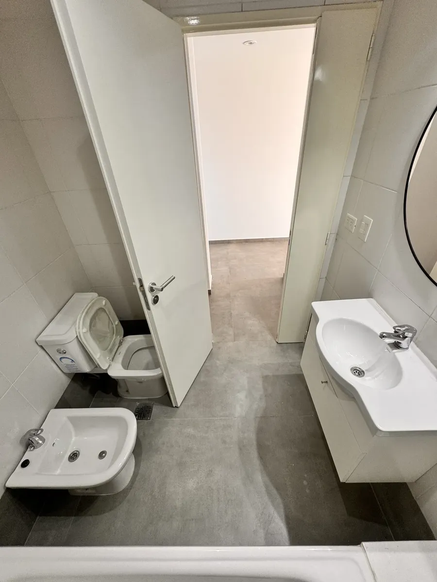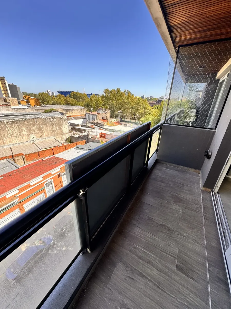 Studio apartment for rent in Villa Luro, brand new, with a balcony. Located on the 5th floor, lateral position. Integrated kitchen with a laundry area, full bathroom, and upper and lower cabinetry.