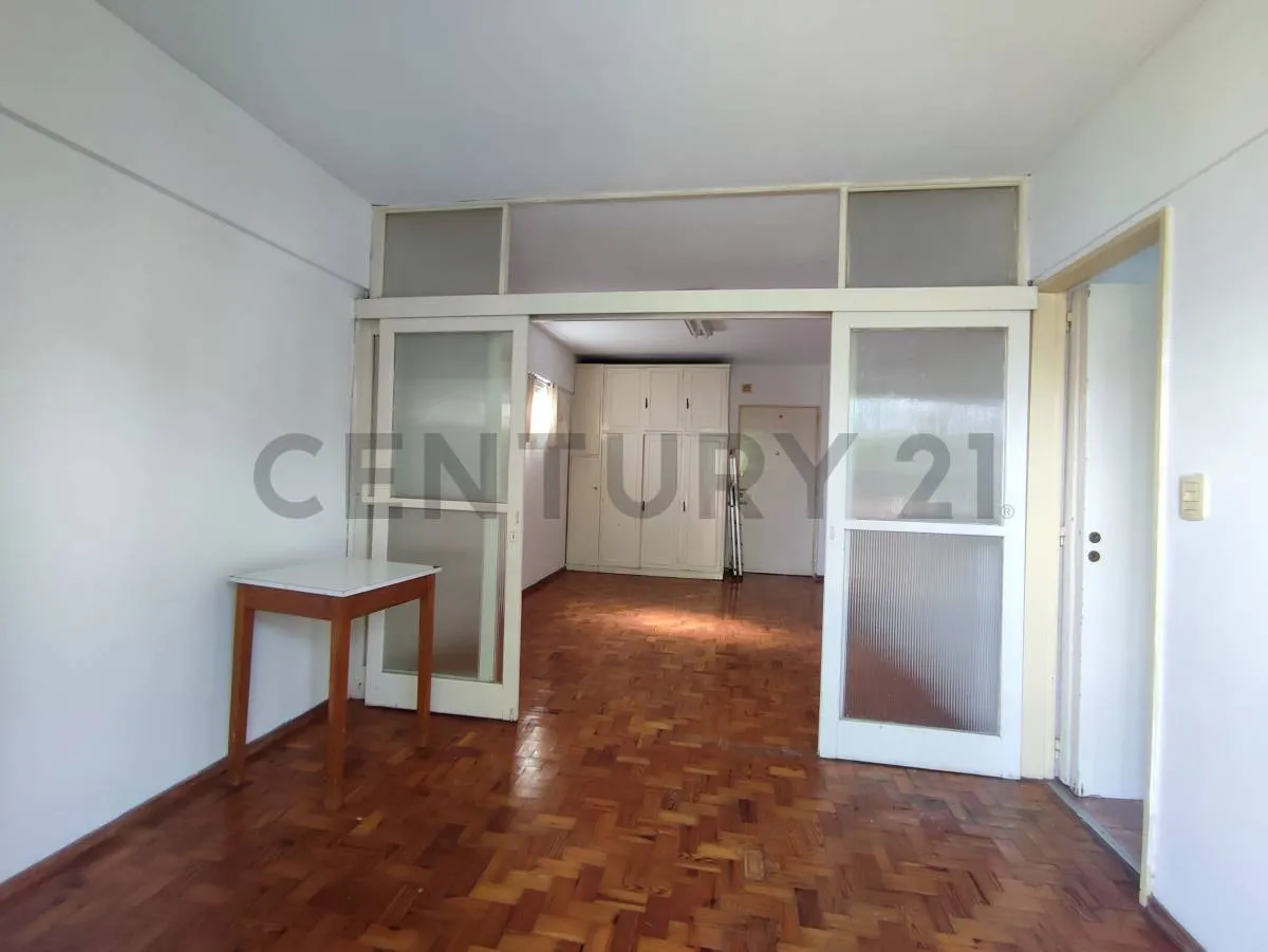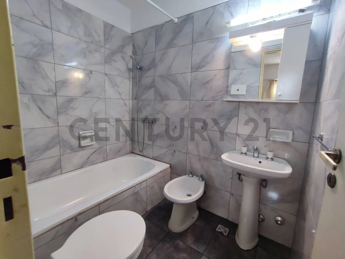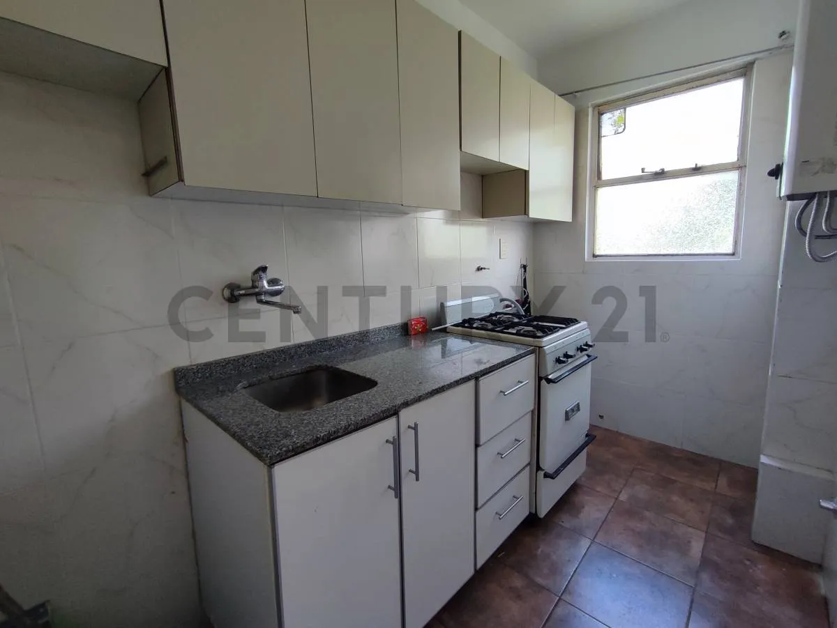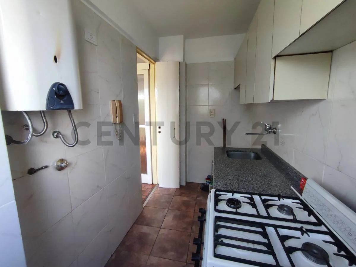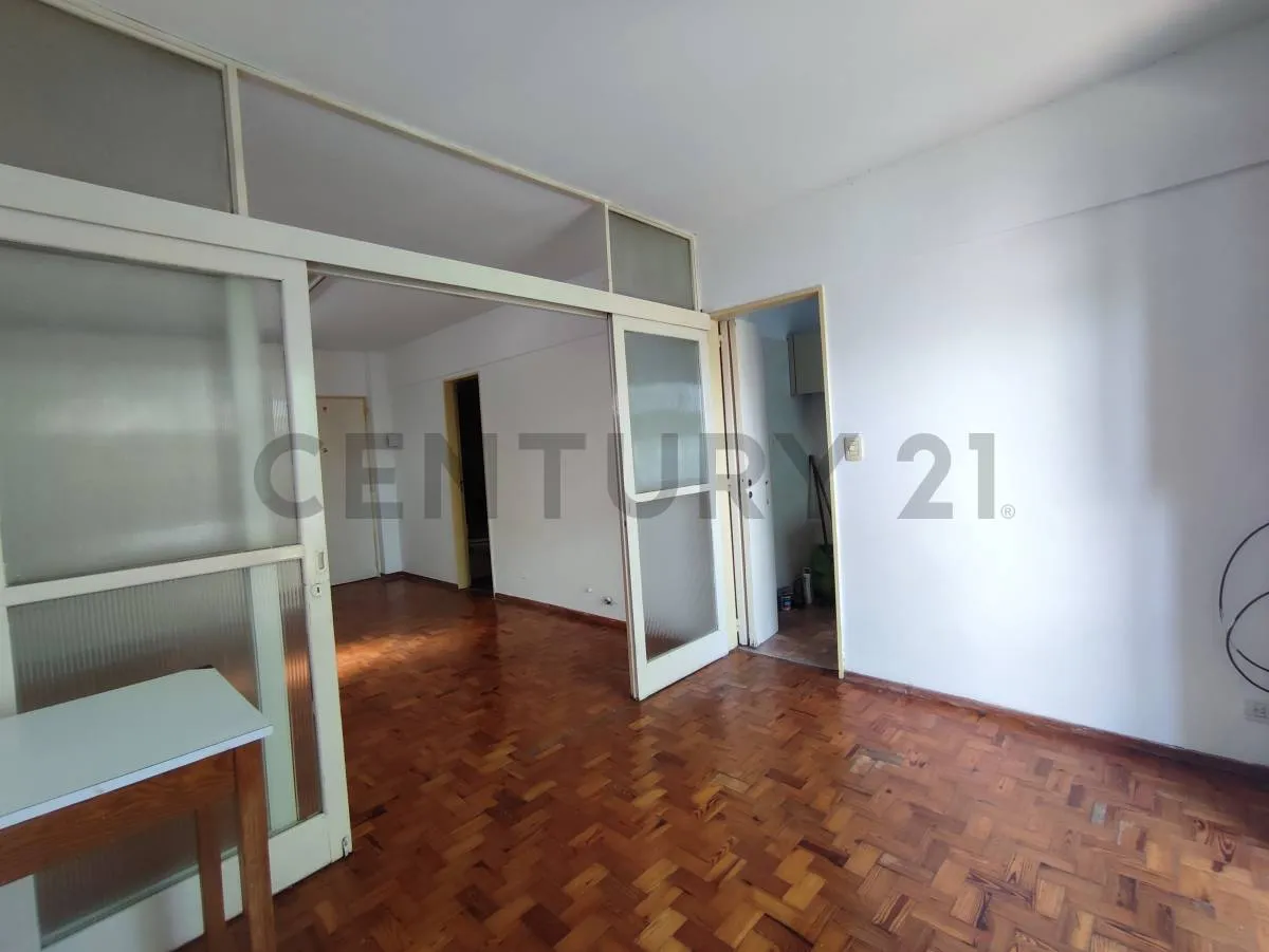Studio apartment with a division in Liniers, with a balcony at the front. It includes a separate, equipped kitchen with connection for a washing machine and a full bathroom with a bathtub. The unit has storage space, and the listing notes it is half a block from Av. Rivadavia with access to public transport; tenant pays utilities and the rental is subject to an IPC increase every 3 months, plus deposit and advance month and a rental guarantee bond or property guarantee.