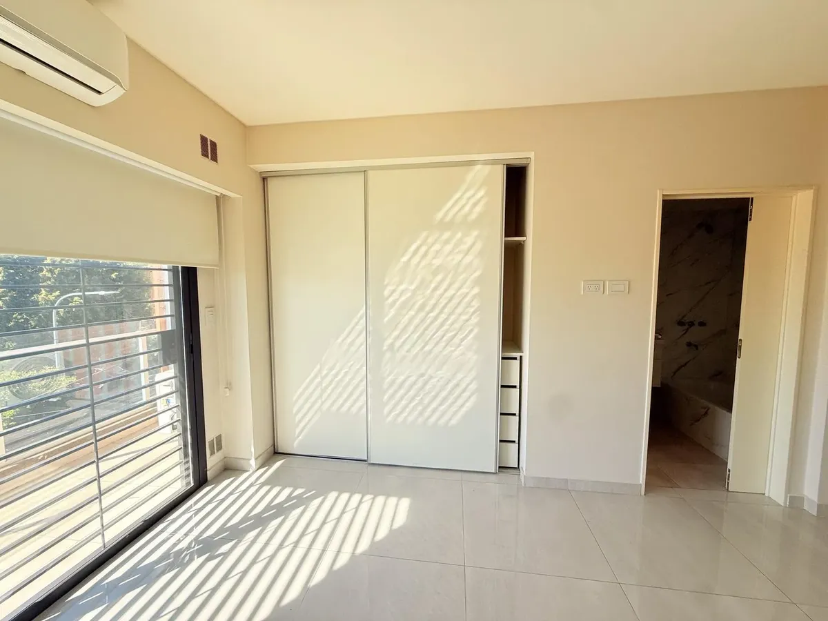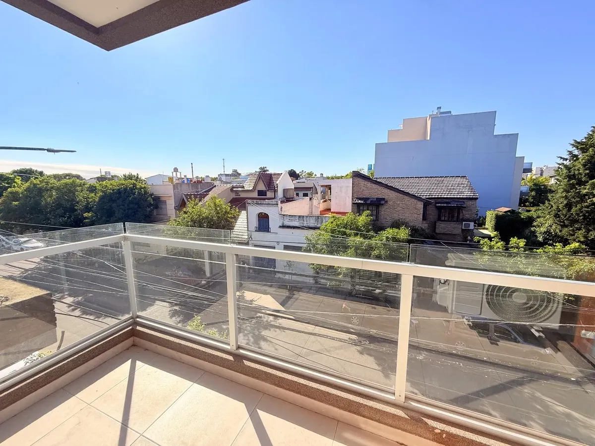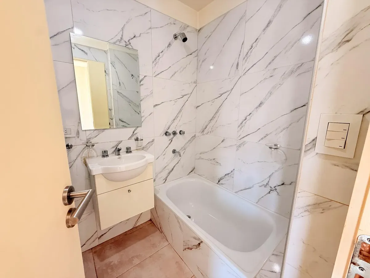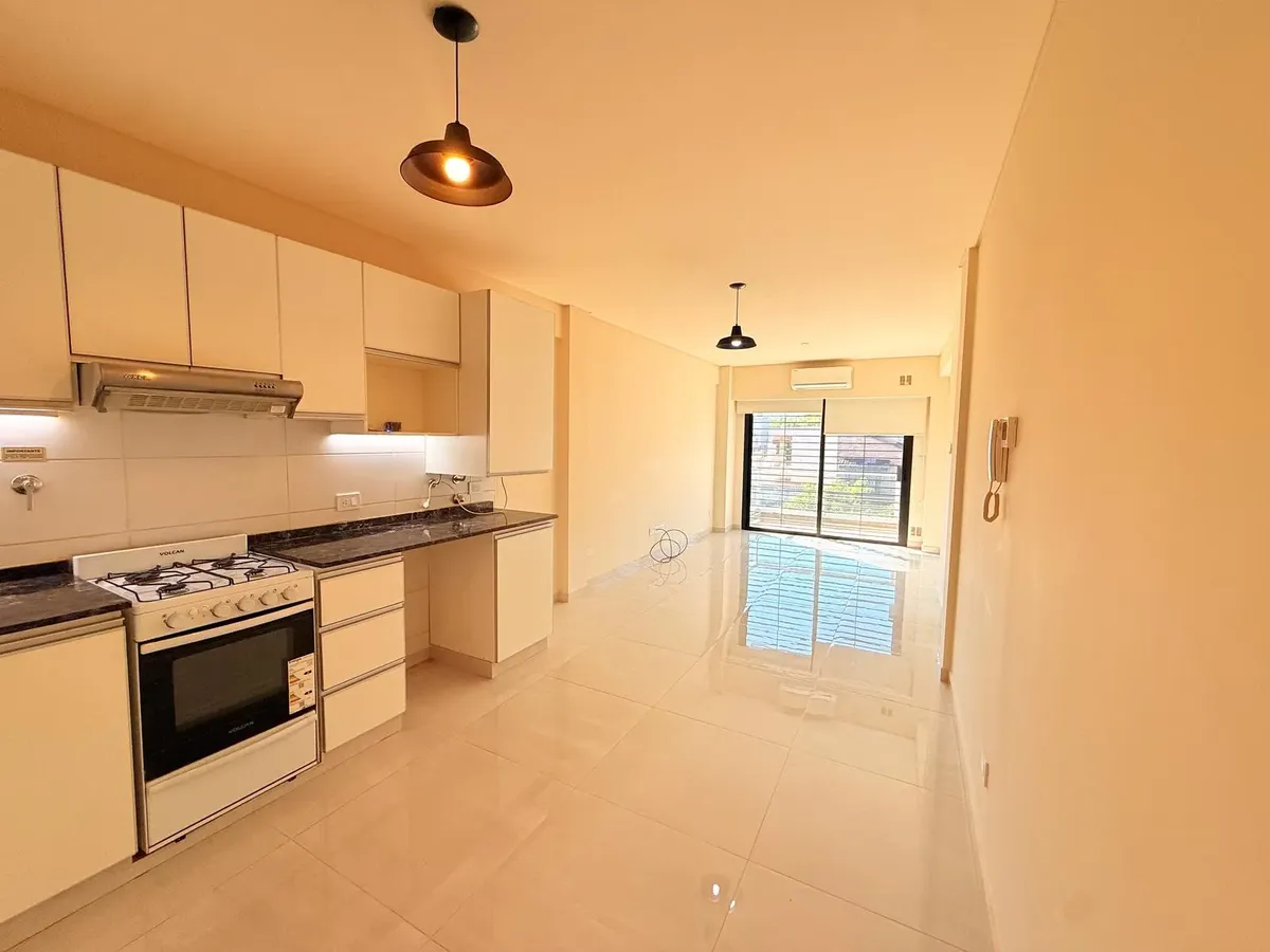 Brand new studio apartment for rent in Villa Luro, a single-room layout with a full bathroom with bathtub. The kitchen has space for a fridge, a cooking appliance and a washing machine, and the unit includes a built-in wardrobe, security grille on the window openings and blackout curtains. The apartment has a balcony; building entry requires a rental guarantee (property guarantee or a FINAER bond), proof of income and a deposit month, and pets are not accepted.