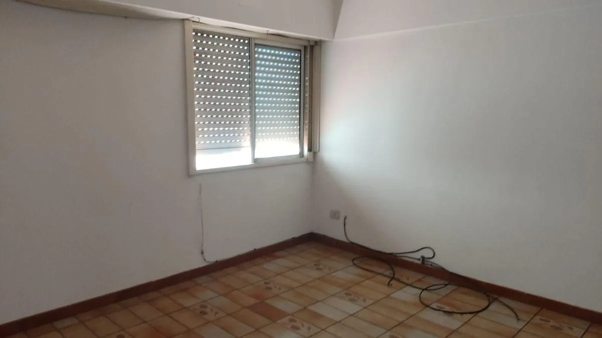 Two-room apartment with covered parking space in Lomas de Zamora. It has a living-dining room, a spacious bathroom, a kitchen with room for a dining area, a bedroom with a fitted wardrobe and an additional parking cover. Services include electricity, gas and water. Building fees and the municipal tax are listed as expenses.
