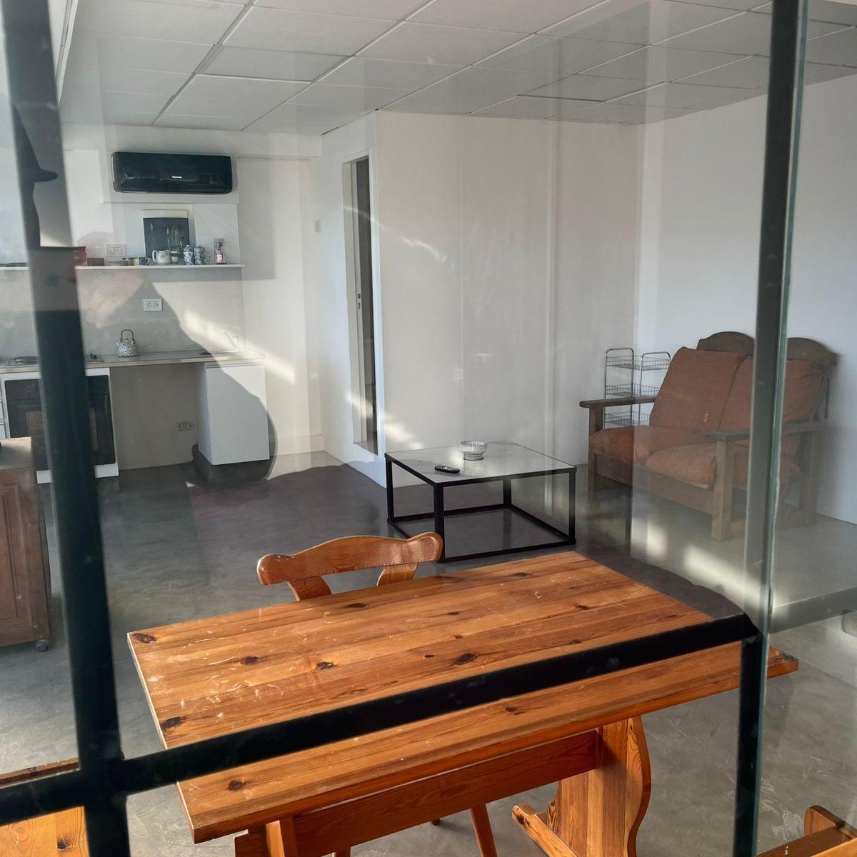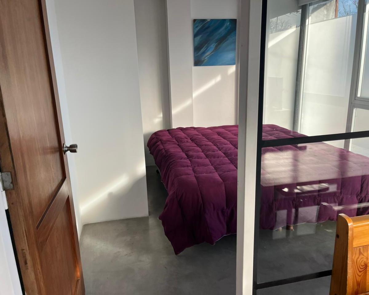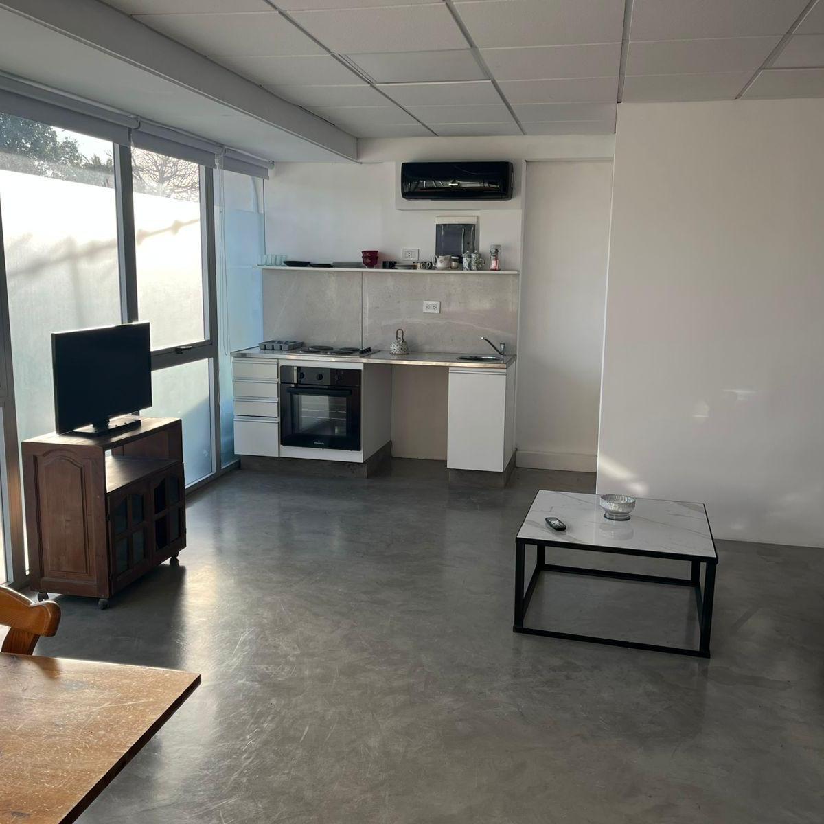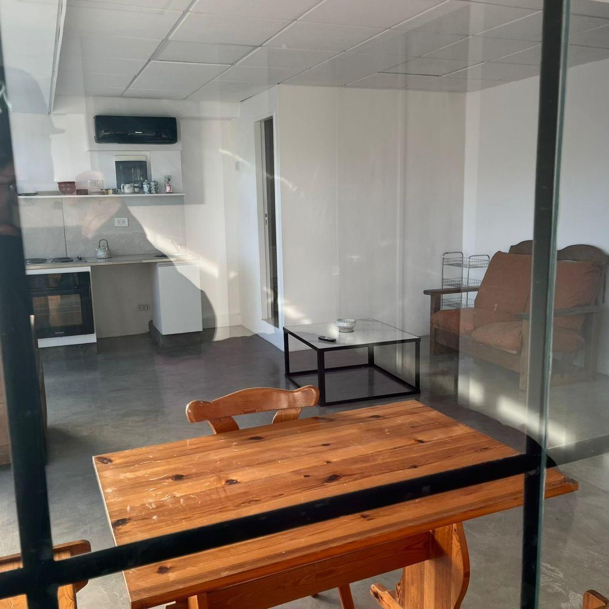 Studio apartment in Martínez with an open-plan layout and integrated living space. Large windows provide natural light throughout the day, with wood details and a fully equipped kitchen. Queen-size bed. Electricity consumption is paid separately; the package price is quoted without lighting service.