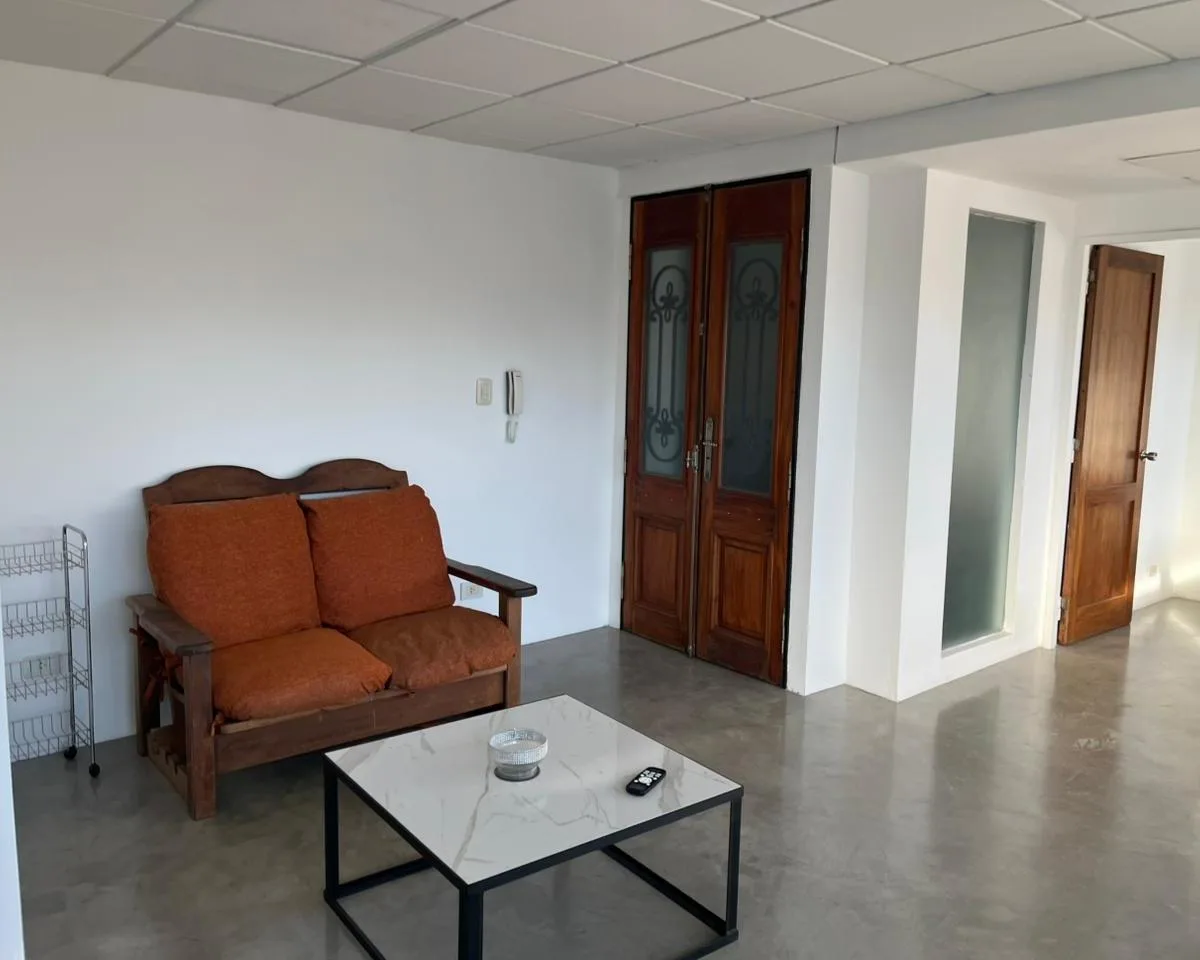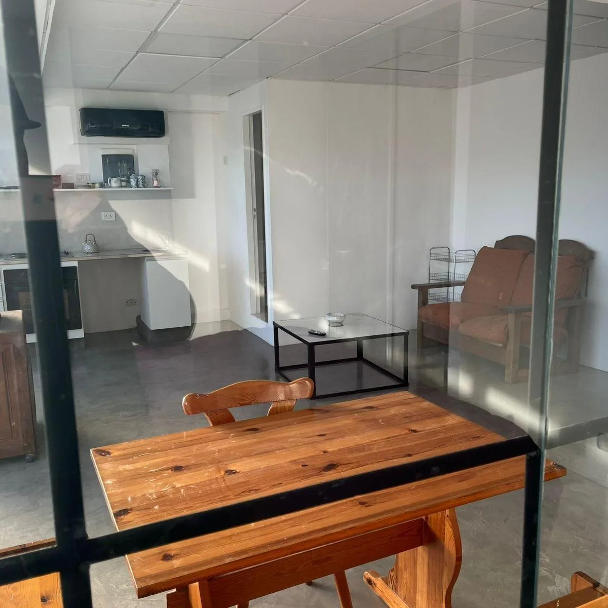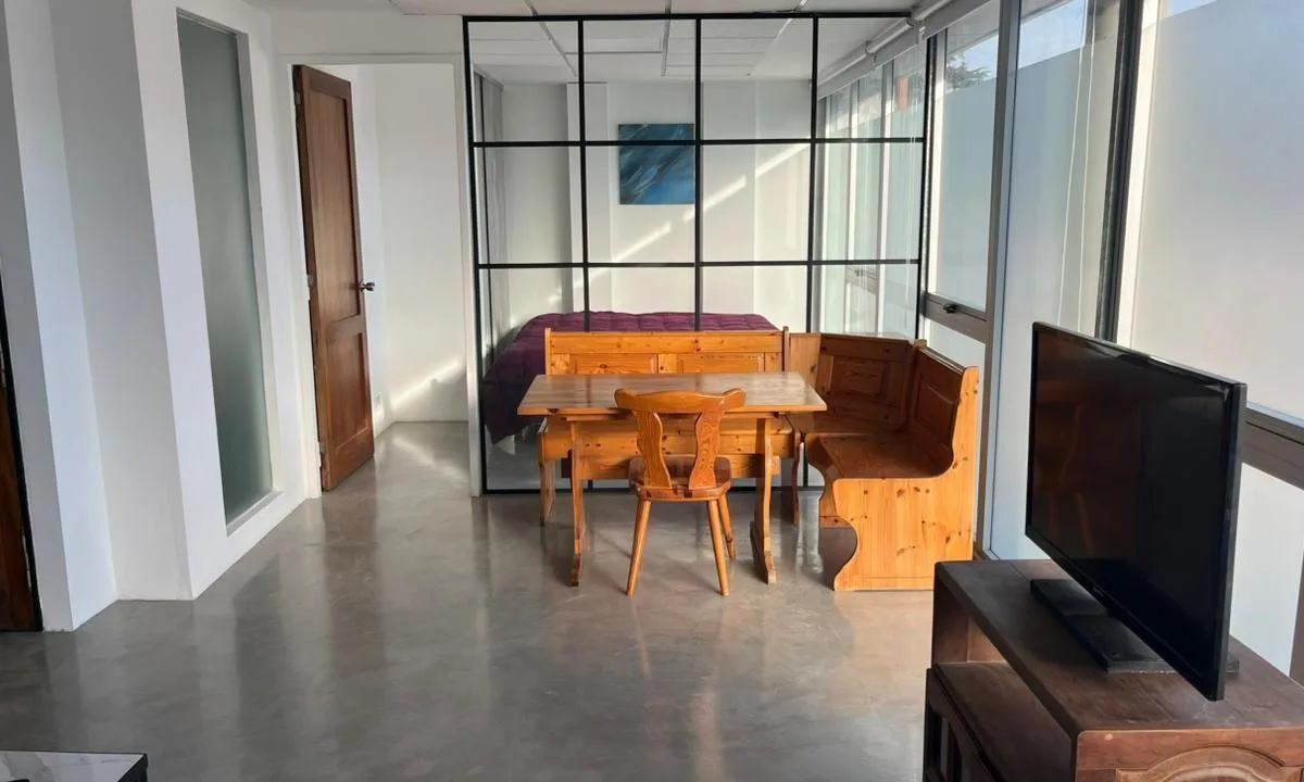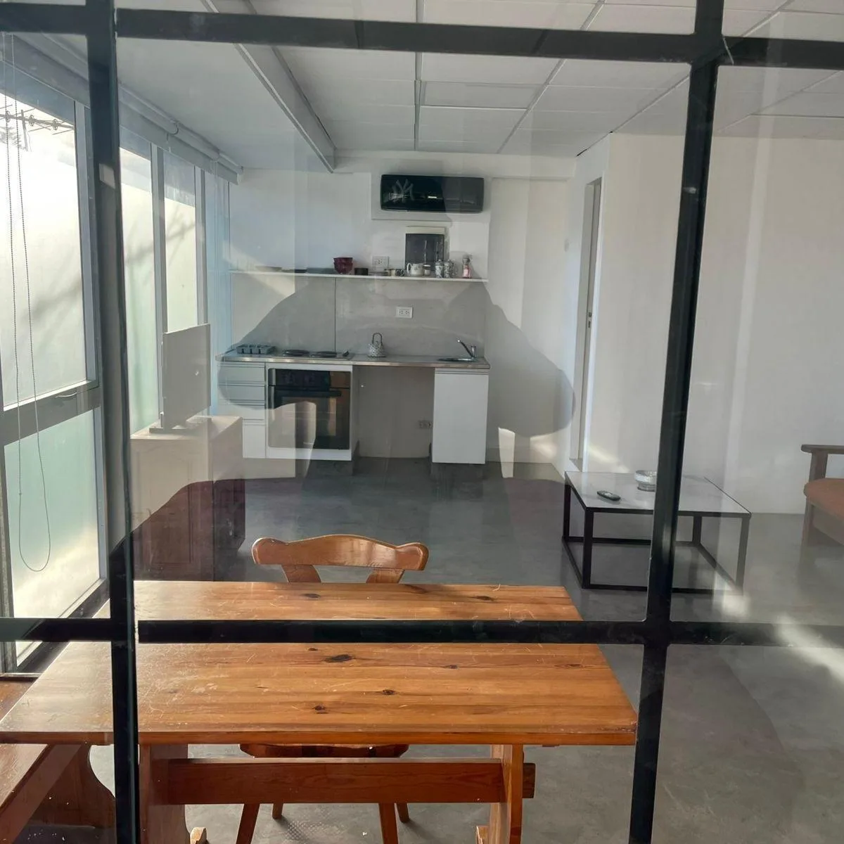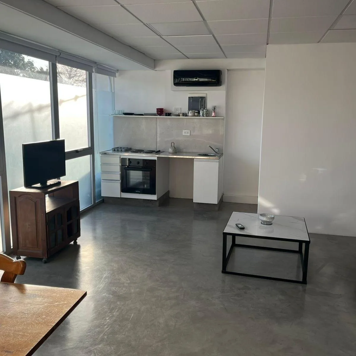 Studio apartment in Martínez with an open-concept layout. Large windows provide natural light; the kitchen is fully equipped and the unit includes a queen-size bed. Electricity consumption is paid separately. Package price.