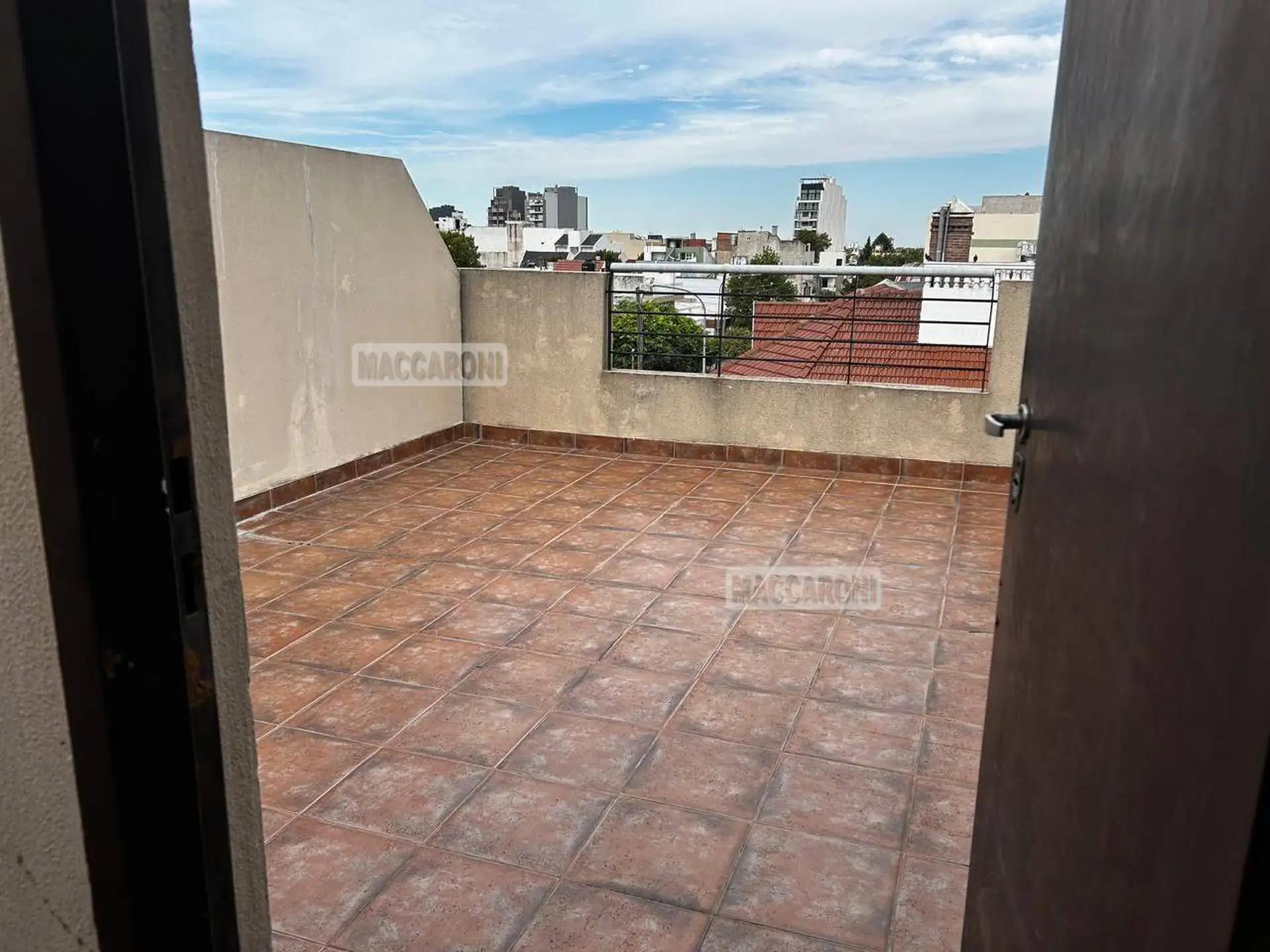 PH (ground-floor or upper unit within a Propiedad Horizontal) studio in Mataderos, Buenos Aires. The unit has a balcony and a private terrace. Arrival requires an on-site visit with staff from Inmobiliaria Maccaroni.