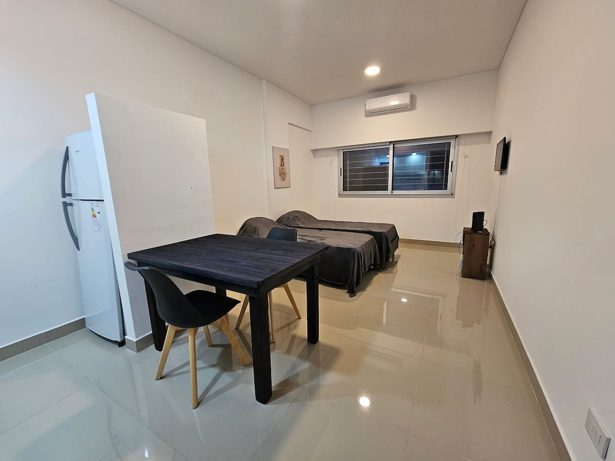 Brand new studio apartment in Monserrat with 30 m². The unit includes a fully equipped kitchen and a bathroom. The furnished layout features 2 single beds. The building has an archaeological museum and a restaurant at the entrance.