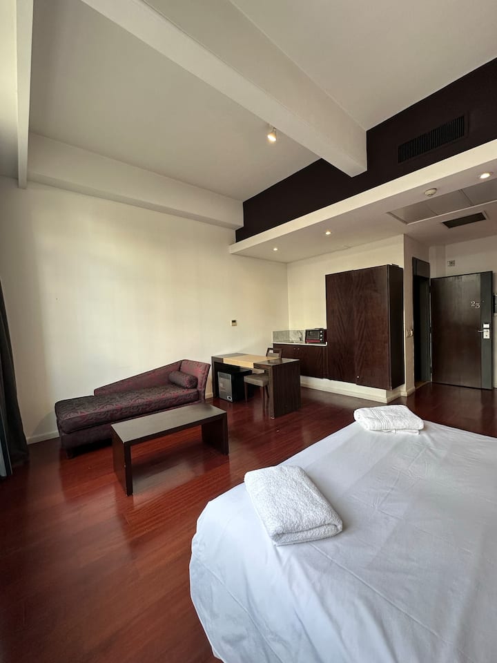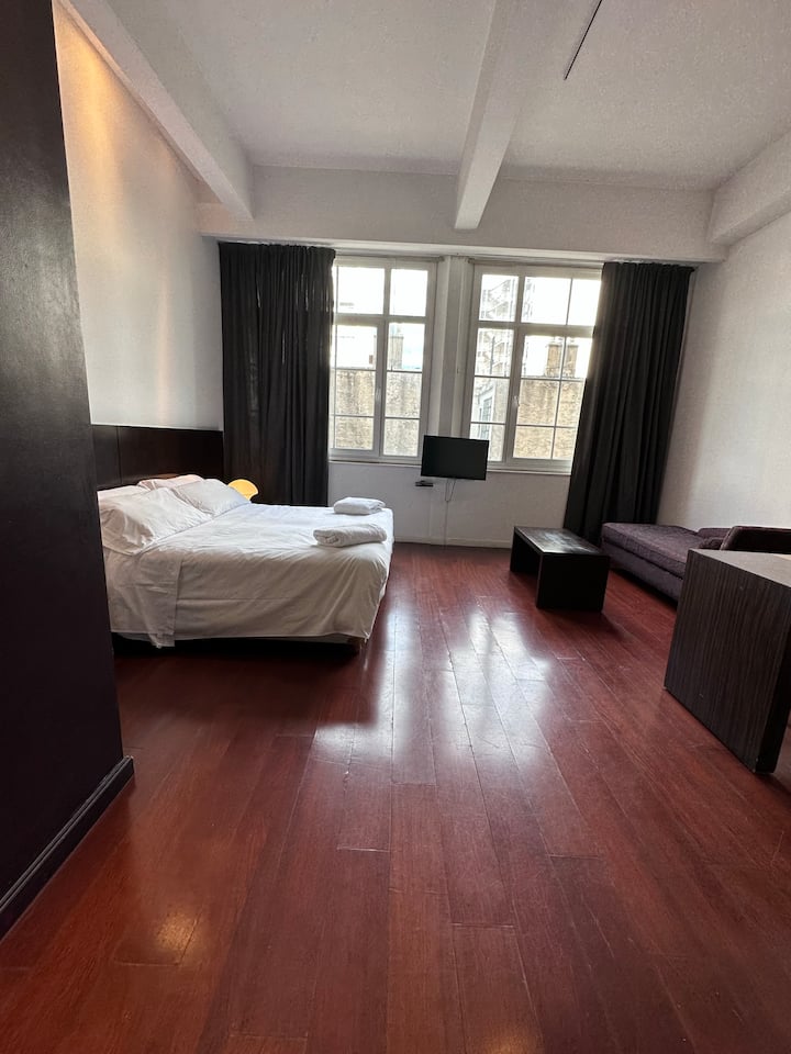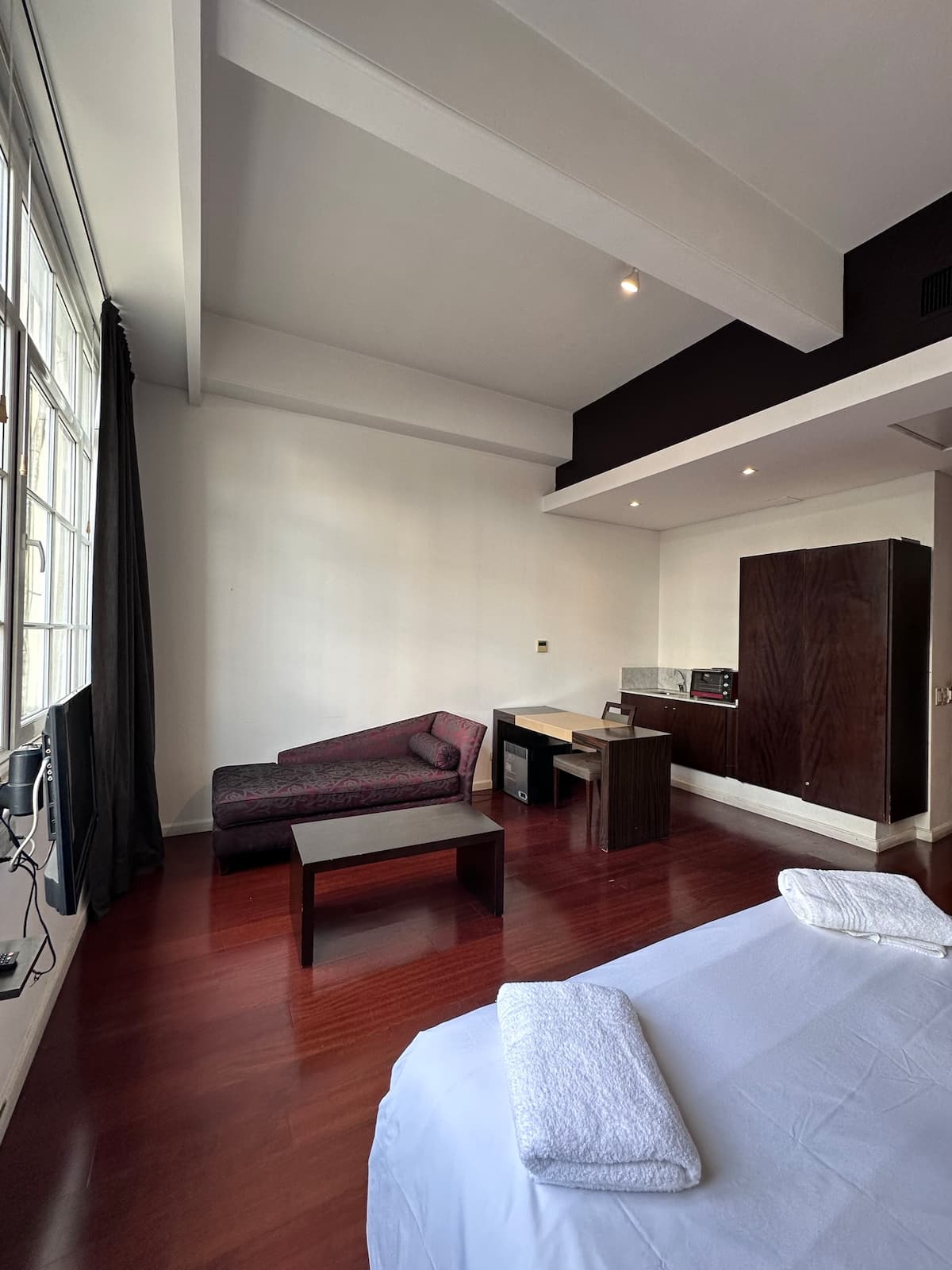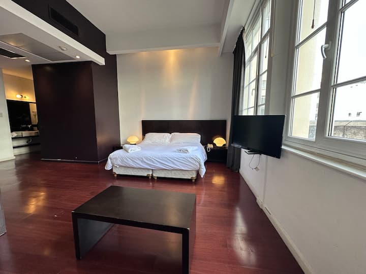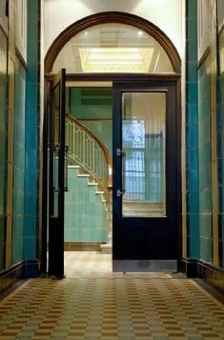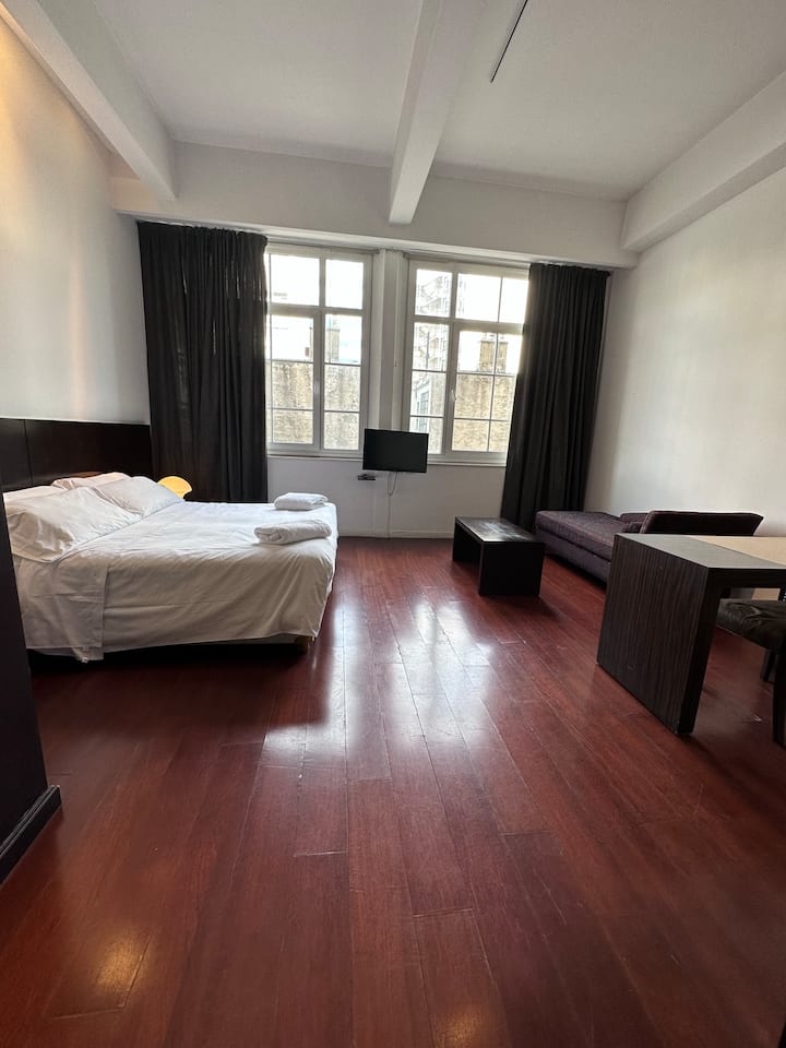 Loft apartment in a historic City of Buenos Aires heritage building, the former Hotel Moreno. The unit has 44 m² and fits up to 2 people with a double bed. The building is two blocks from Plaza de Mayo/Casa Rosada and half a block from Calle Defensa, where the Feria de San Telmo is held on Sundays. Entry to the building is via a mobile app, which requires sufficient phone battery for access.