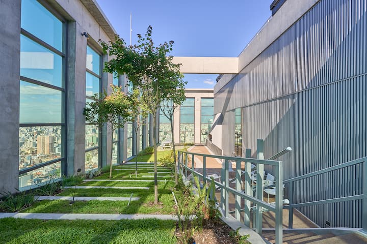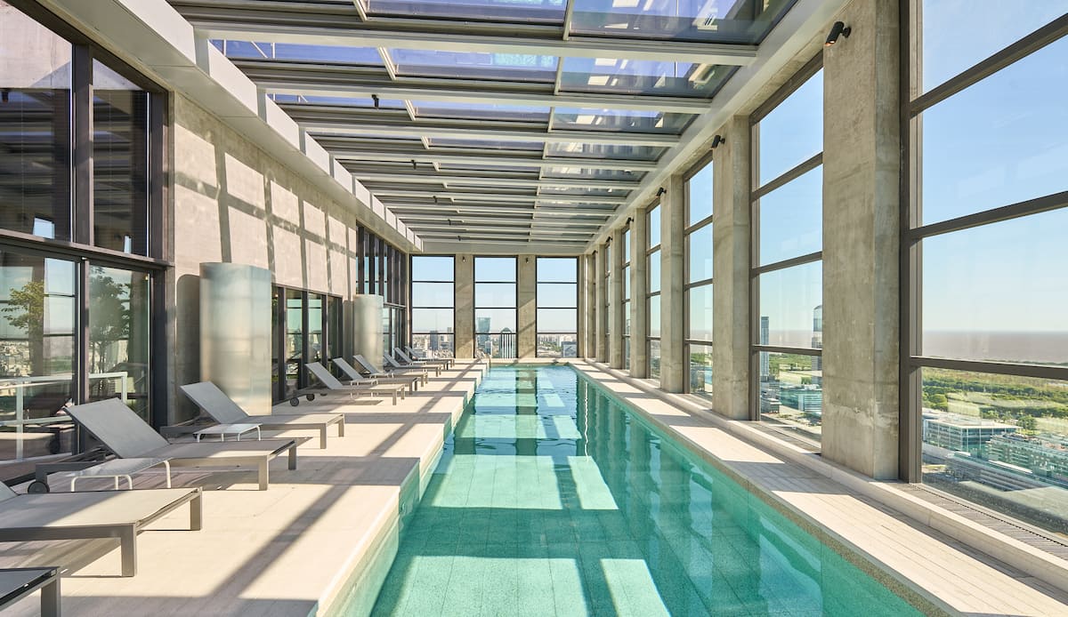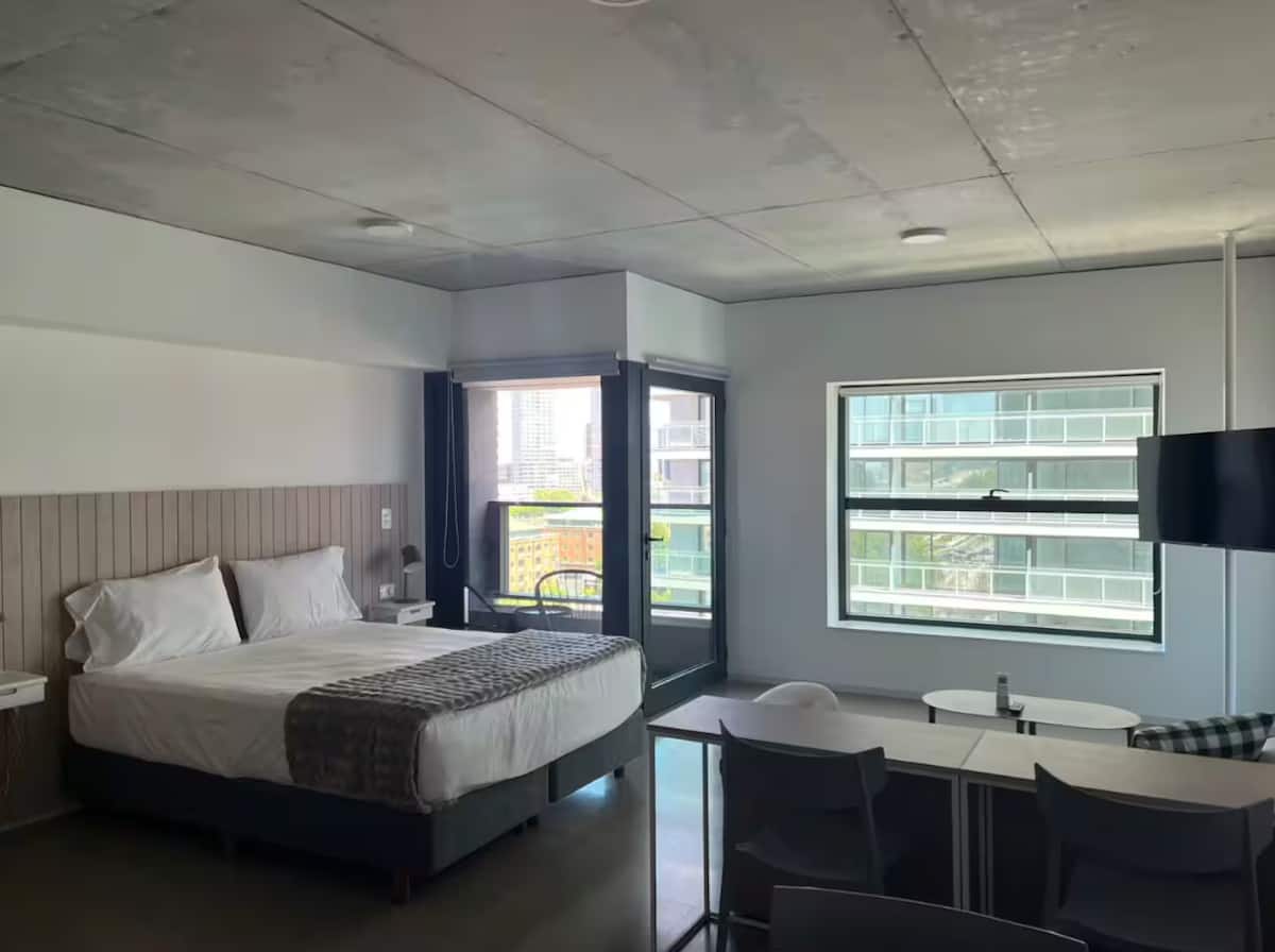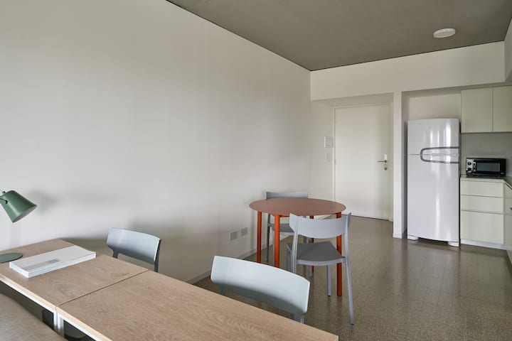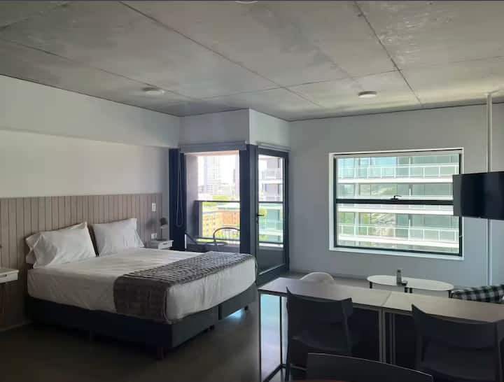 Studio apartment in the Huergo 475 building. It has an integrated kitchen, full bathroom and a private balcony with open views. The 38-storey building offers a heated pool, gym, coworking space, communal room, grills and terraces with 360° views.