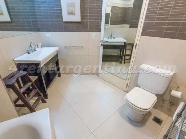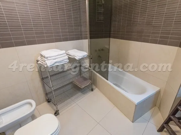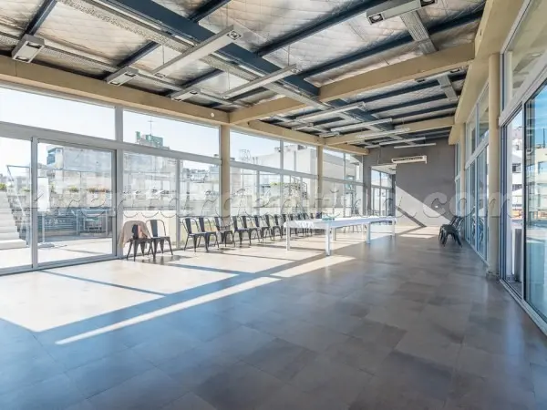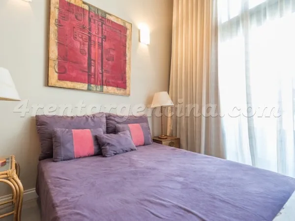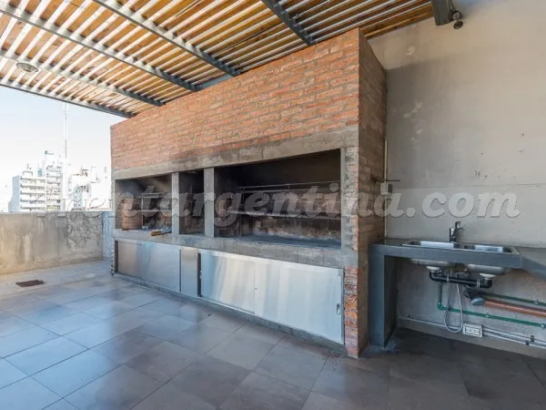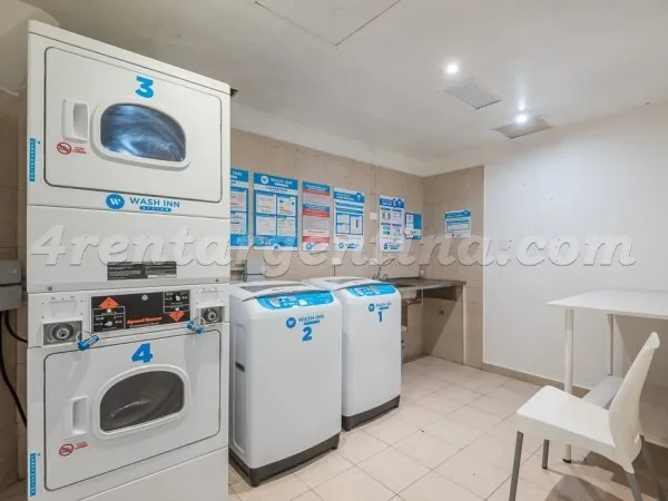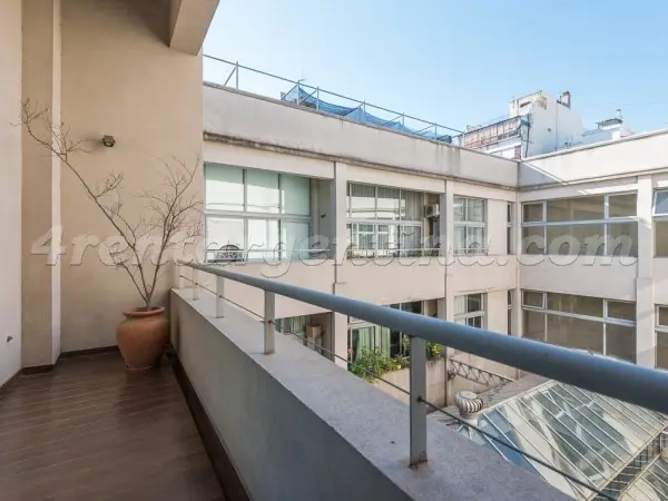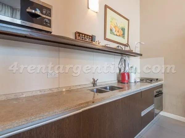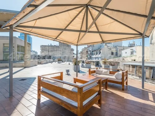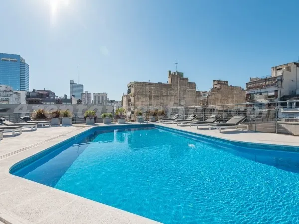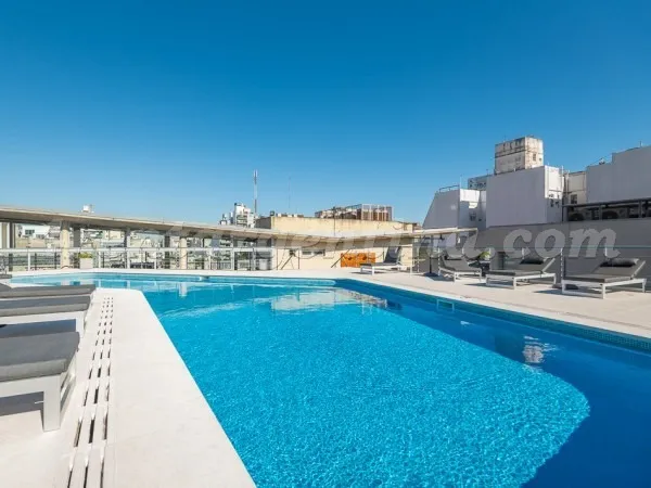 Furnished studio apartment for short stays in San Telmo, for up to 3 people. It includes a double bed, a sofa bed, an integrated kitchen, a fully equipped bathroom with a bathtub, and a terrace balcony. The unit has LCD TV with cable, Wi-Fi internet, air conditioning (hot/cold), a fridge with freezer, microwave, electric oven, electric hotplate, coffee maker, blender, electric kettle, iron and hair dryer. The building has a lobby, elevator, 24-hour security, pool, solarium, terrace, grill area,