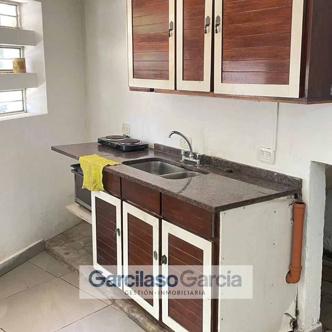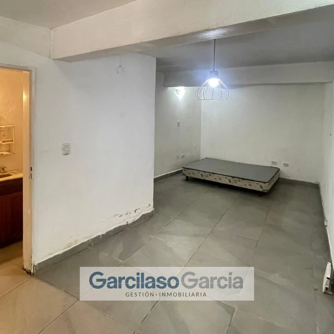Studio apartment for rent in Castelar Sur, Morón. No building fees apply. The unit has an entry corridor, a dressing area (ante-bath), 1 full bathroom, an integrated studio room, and a patio with a laundry area. Rental requirements include a property guarantee or proof of income, income documentation, 1 month’s rent, 1 month’s deposit, real-estate fees, and related guarantee and signature certification paperwork. The published measurements are approximate and for guidance only.