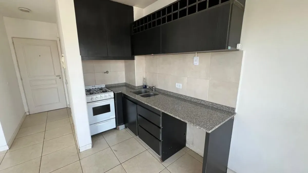 Studio apartment in Morón with a semi-integrated kitchen. Street-facing with a front balcony, a built-in wardrobe and a full bathroom with a bathtub.
