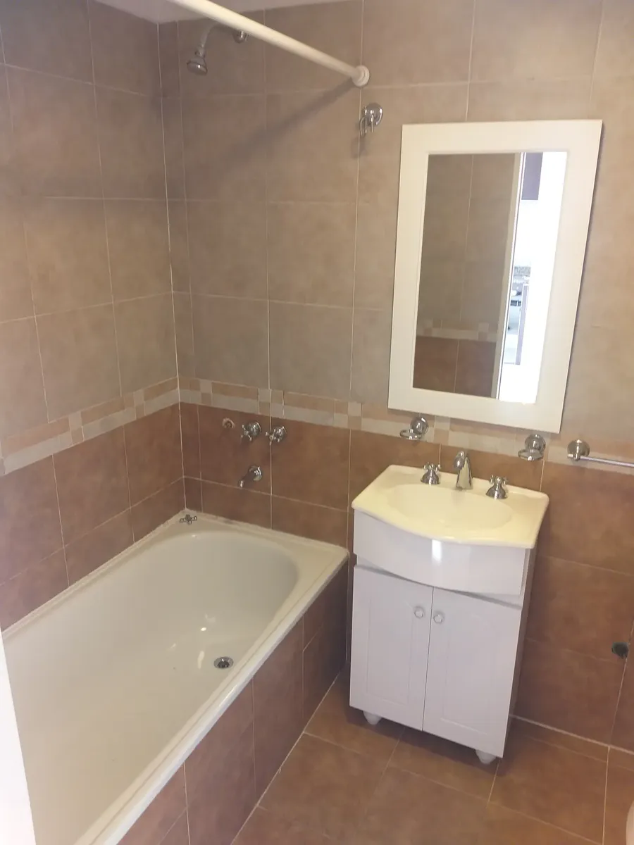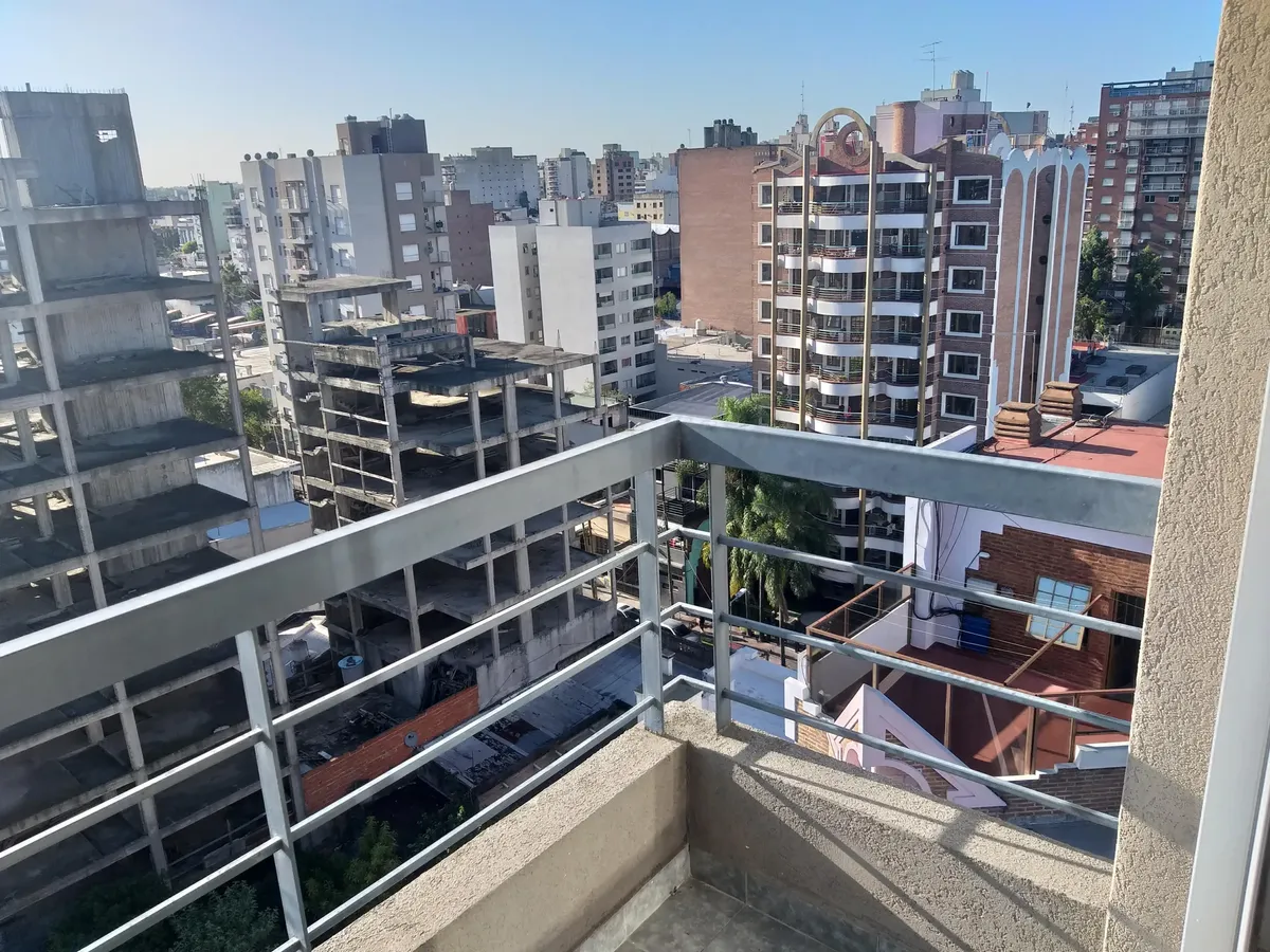 Studio apartment in Morón Norte with an integrated kitchen, a full bathroom and a balcony facing the courtyard (contrafrente). Rent is $350.000 with quarterly adjustment.