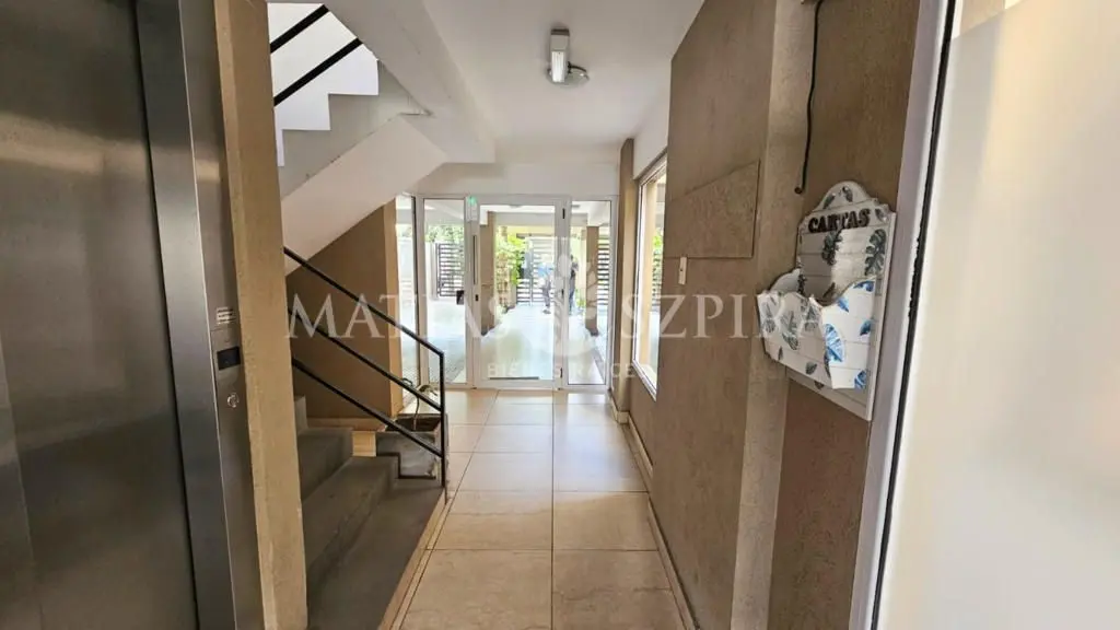 Studio apartment for rent in Morón, 24 m² total area. Living-sleeping area with integrated, equipped kitchen, separate full bathroom, and a bedroom zone that can be divided with a movable partition. Includes electric oven with cooktop, hot-water tank, space for a washing machine, built-in wardrobe, balcony, air conditioning and blackout curtains. The building has perimeter cameras and on each floor, plus a stainless-steel elevator. Suitable for professional use; building fees are described as lo