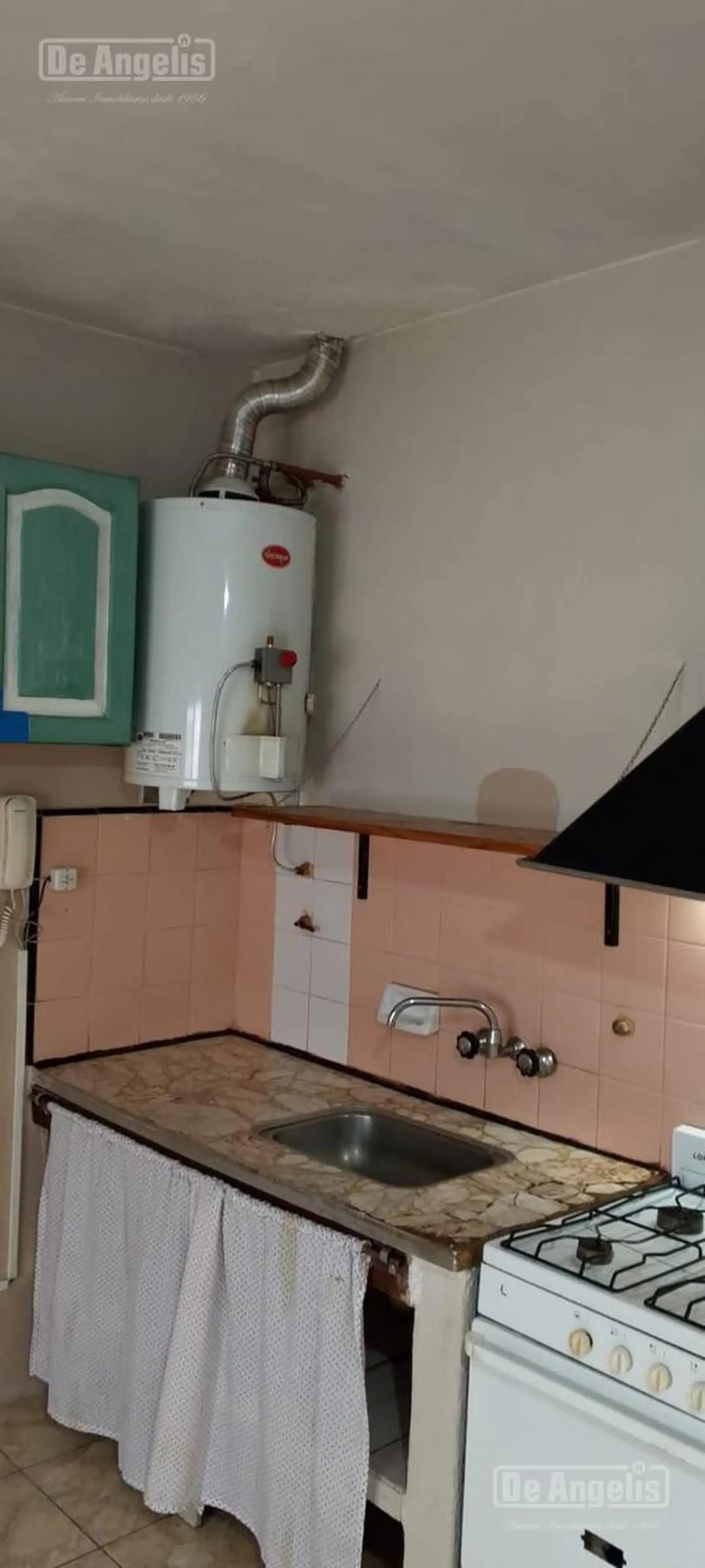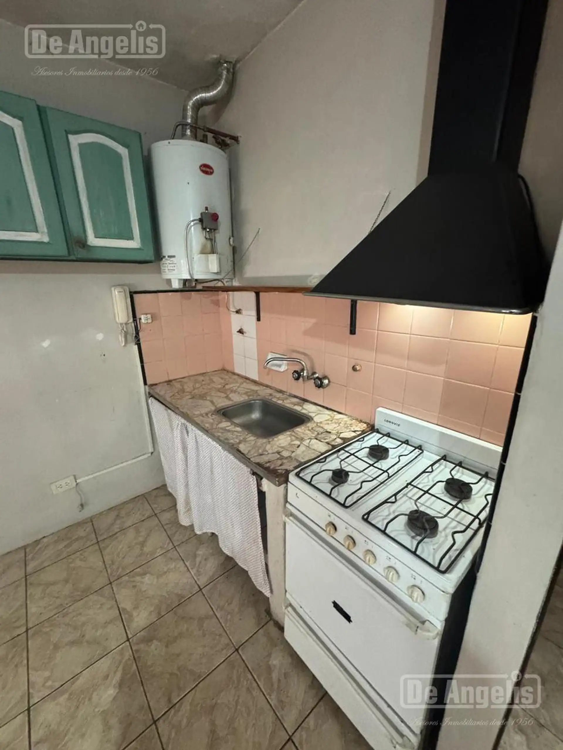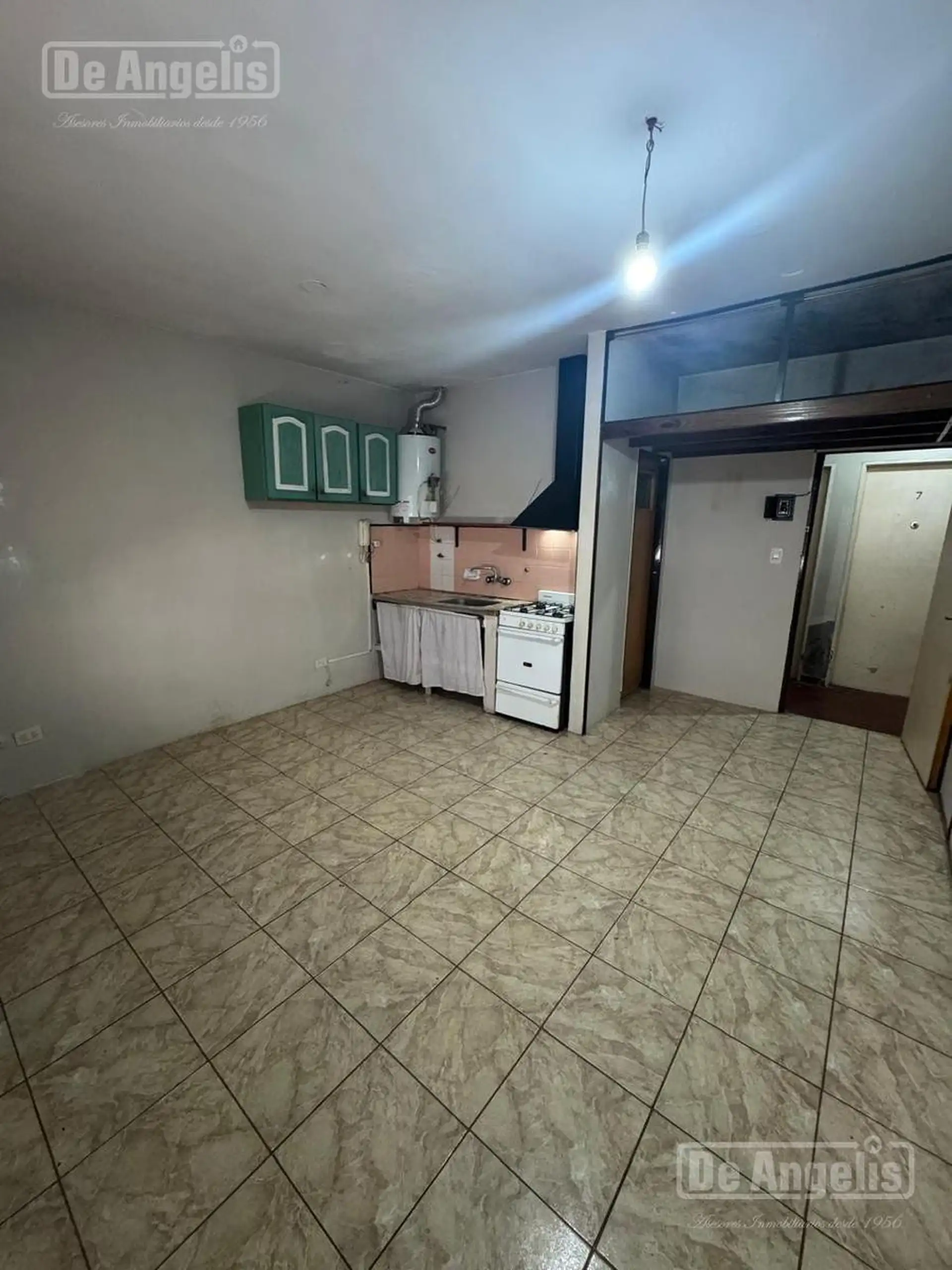 Studio apartment in Morón with 10 years’ age. The unit measures 4.80 m x 4.10 m and includes a bathroom of 1.40 m x 2.00 m. It is located on the first floor of a building with no lift, with services including running water, sewage, natural gas and electricity.