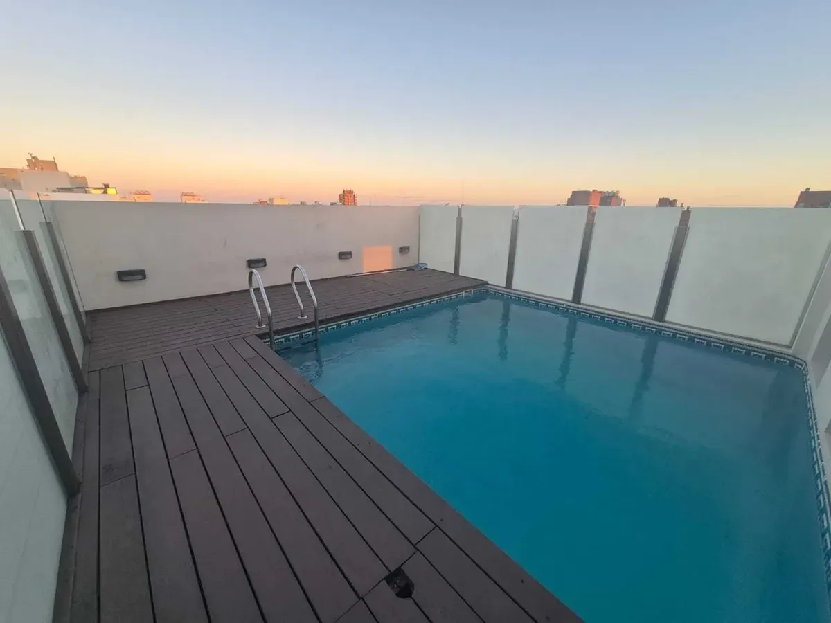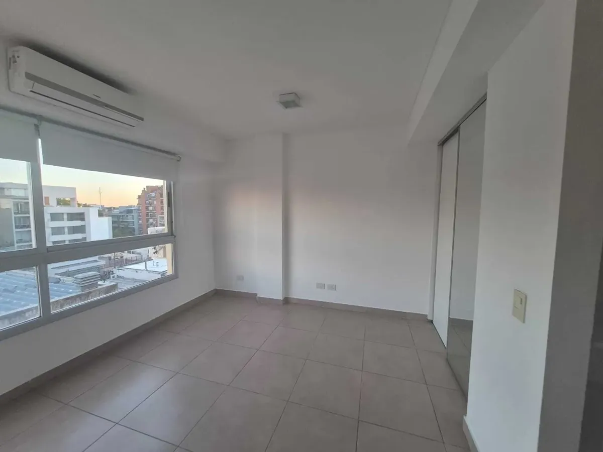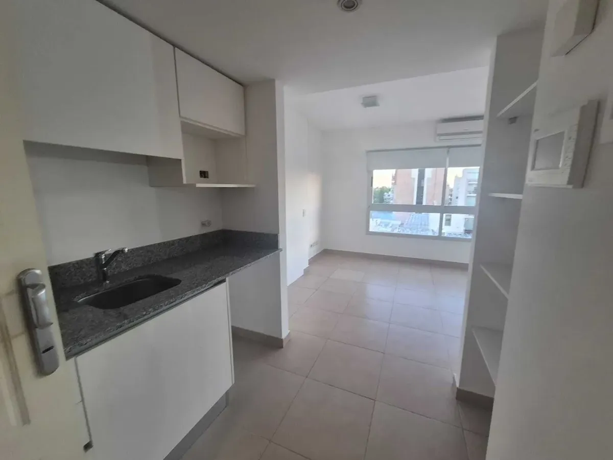 Studio apartment for rent in Castelar Norte. Main room with built-in mirrored closet and an air-conditioning unit installed. Separate equipped kitchen and a full bathroom with bathtub. The building has a communal room (SUM), laundry facilities and a rooftop pool with a deck. No assigned parking space. Pets are not accepted. Rent is $569.000 and building fees (expensas) are $150.000, with quarterly adjustment by IPC.