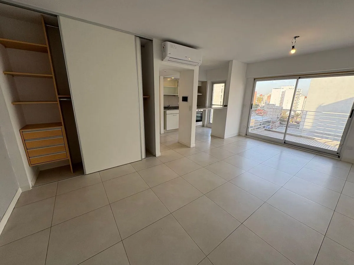 Studio apartment of 40 m² covered and 44 m² total, east-facing and street-facing, with a balcony. It has 1 bathroom and includes air conditioning, an alarm system and internet/Wi-Fi access. The building has 8 floors, a lift, a resident caretaker, and shared washer and dryer.