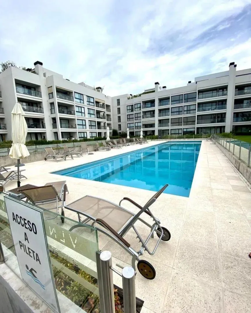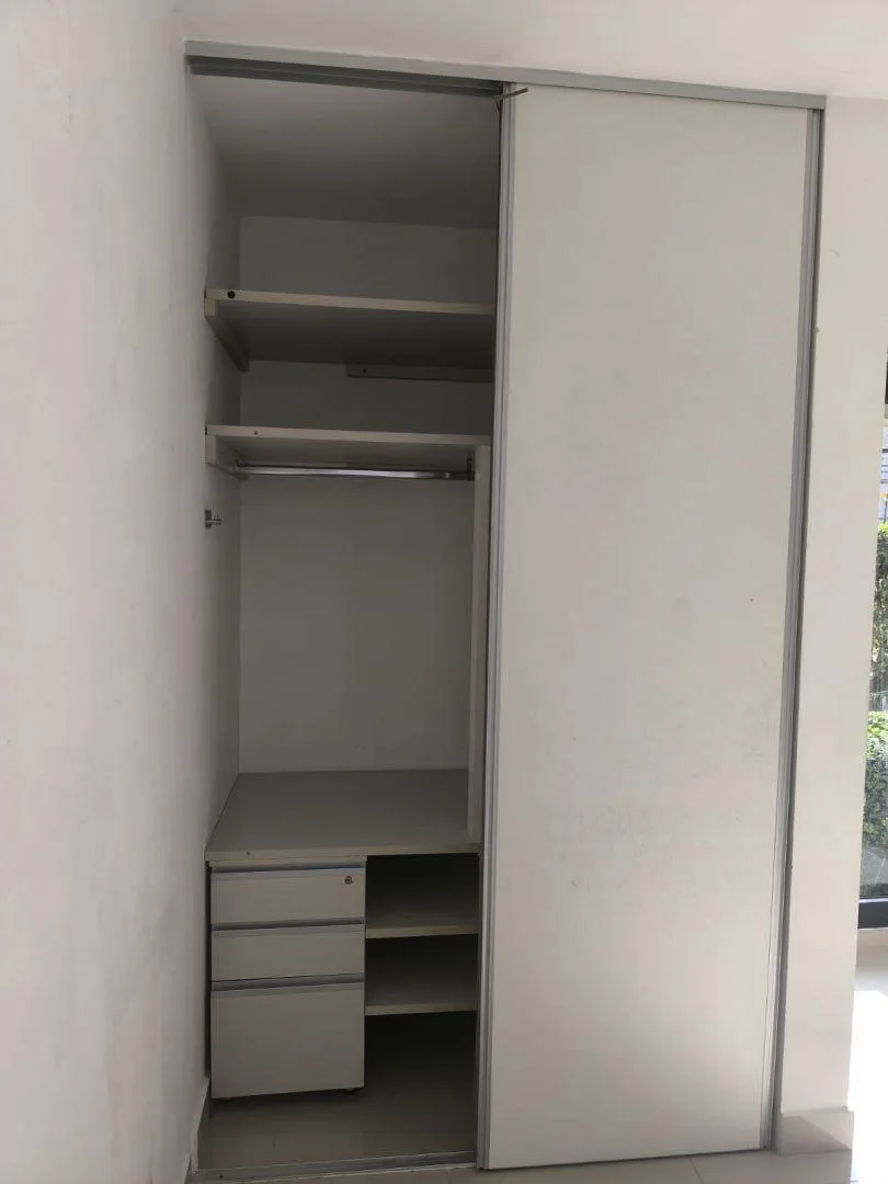 Studio apartment on the ground floor for rent in the Vilanova Haedo complex. It has a combined living and dining area with an integrated kitchen, a full bathroom and a fitted wardrobe. The complex includes a central lounge, a gym, kids club, central garden, pool, solarium and WiFi in leisure areas, with a location 100 metres from Autopista del Oeste.