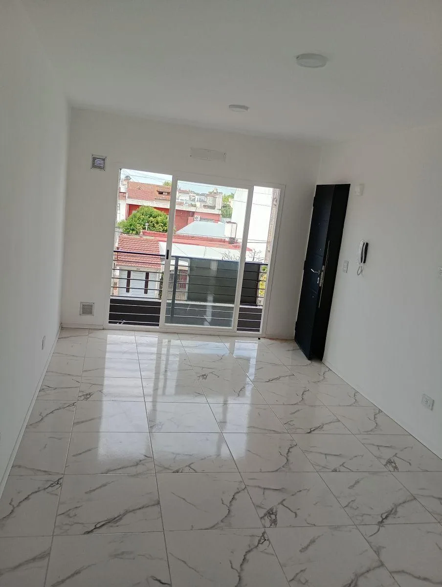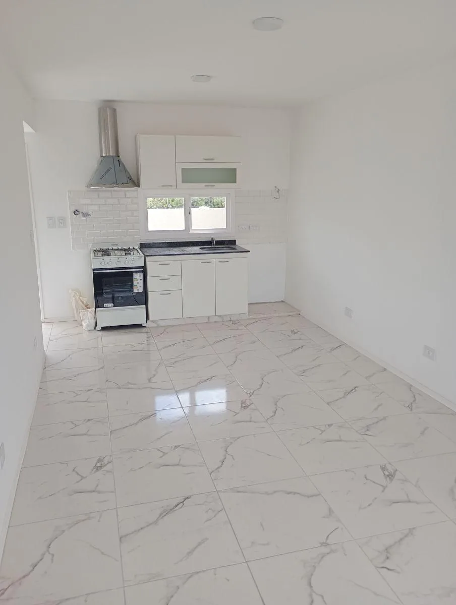 New studio apartment in El Palomar, on the 2nd floor reached by stairs. The unit has a kitchen/dining area, a full bathroom, and a patio. Monthly rent is $450.000, with a 2-year contract and a quarterly increase based on IPC.