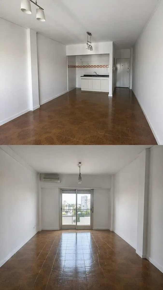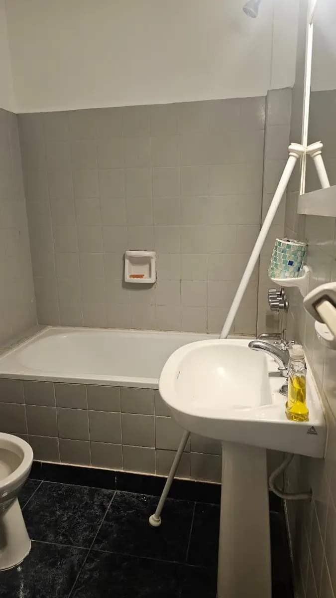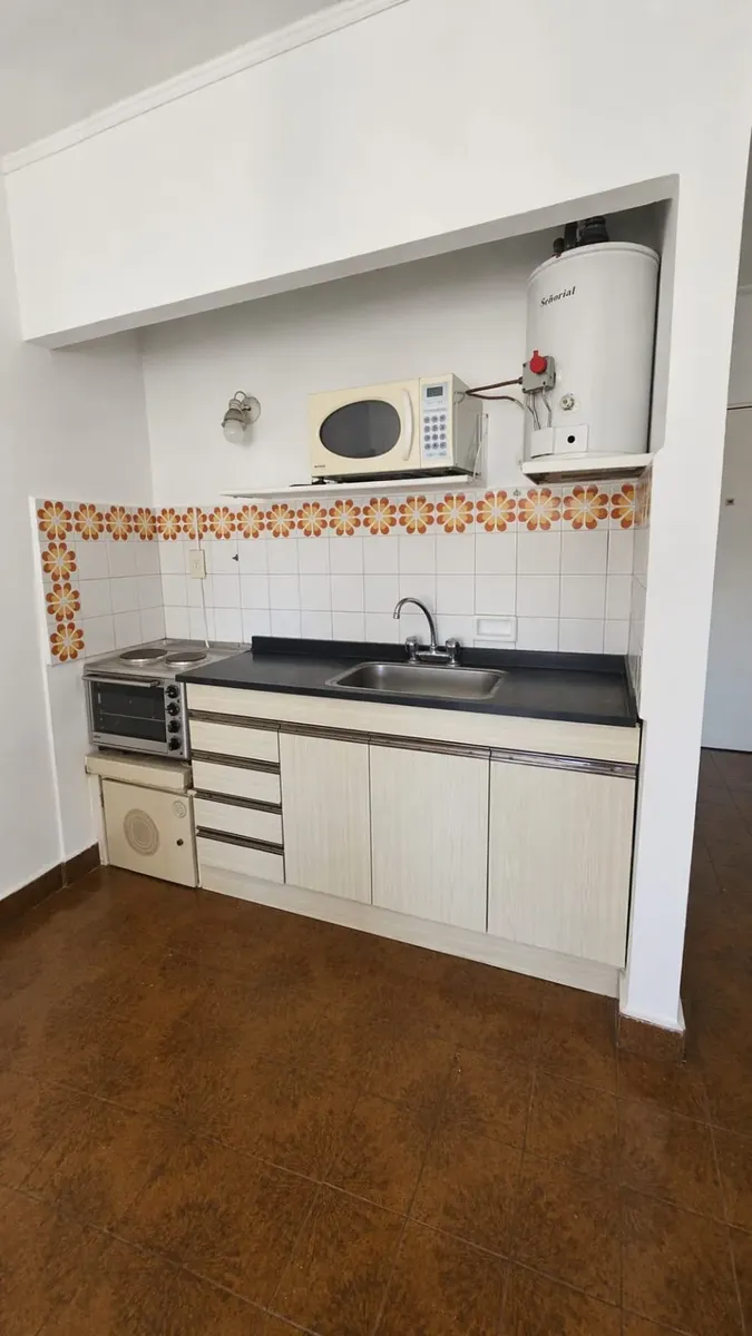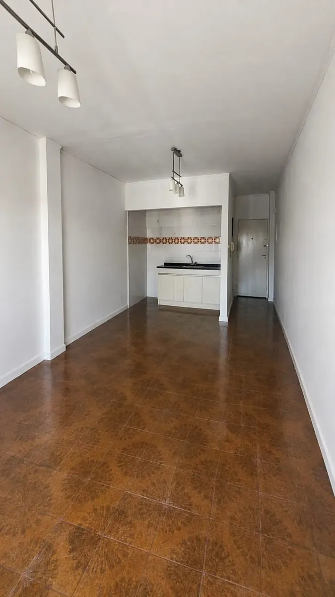 Studio apartment in Castelar Centro. Located one block from the station, with immediate access to public transport, shops and services. The unit has a single room with natural ventilation, an integrated kitchen with base cabinets and an upper pantry, and a full bathroom. Suitable for one person or a couple and also described as suitable for professional use.