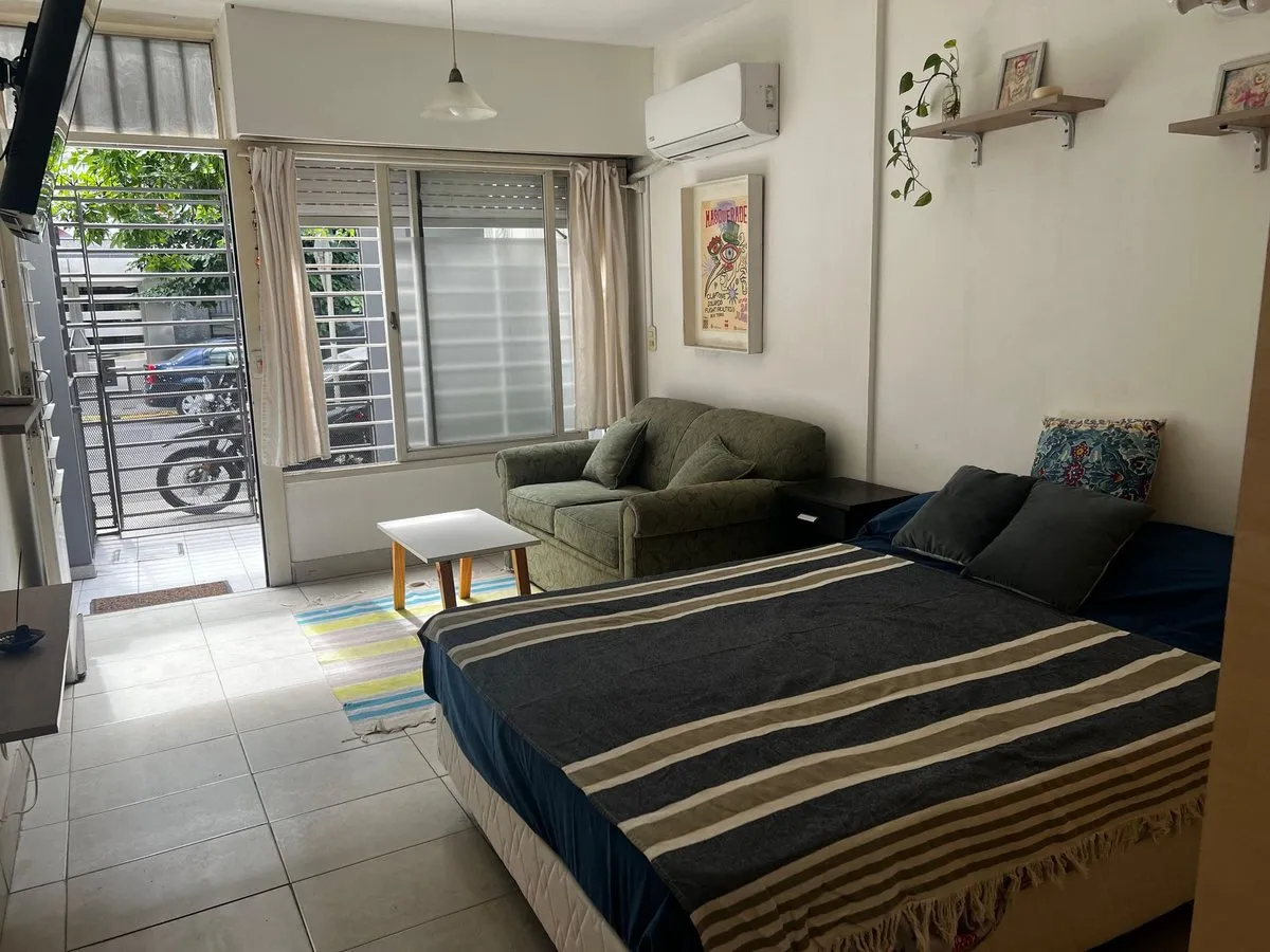 Fully furnished studio apartment in Núñez, located on the ground floor at the front with an independent entrance. Includes a separate, fully equipped kitchen, a full bathroom, and air conditioning. Private patio with a grill; laundry available in the building. Building fees for February 2026 are $115,000 and include AYSA. No gas service. Rent is USD 500 per month with a 1-month advance and a 1-month guarantee deposit; rental guarantee is exclusively a rental insurance bond (seguro de caución). U