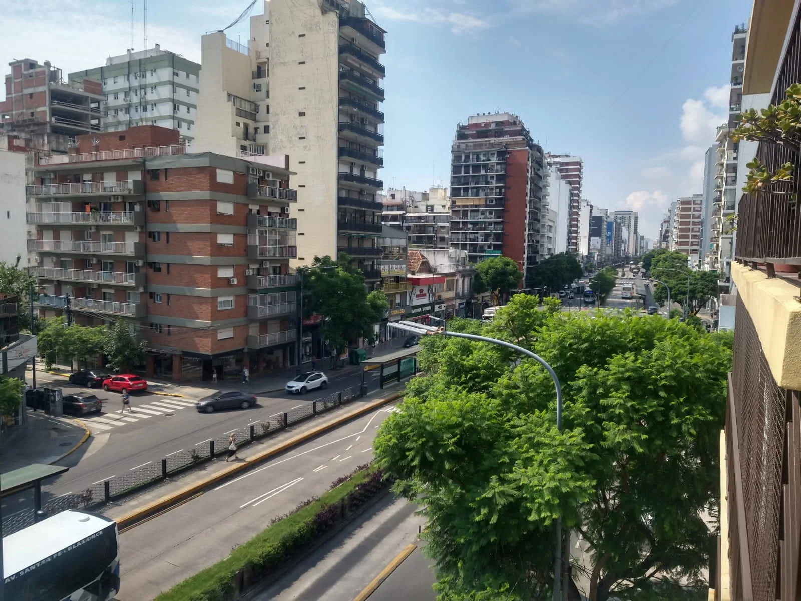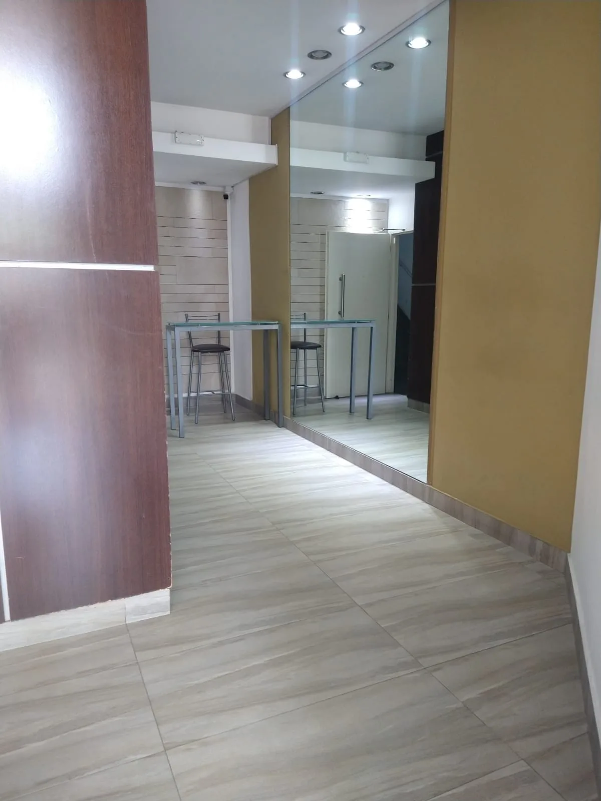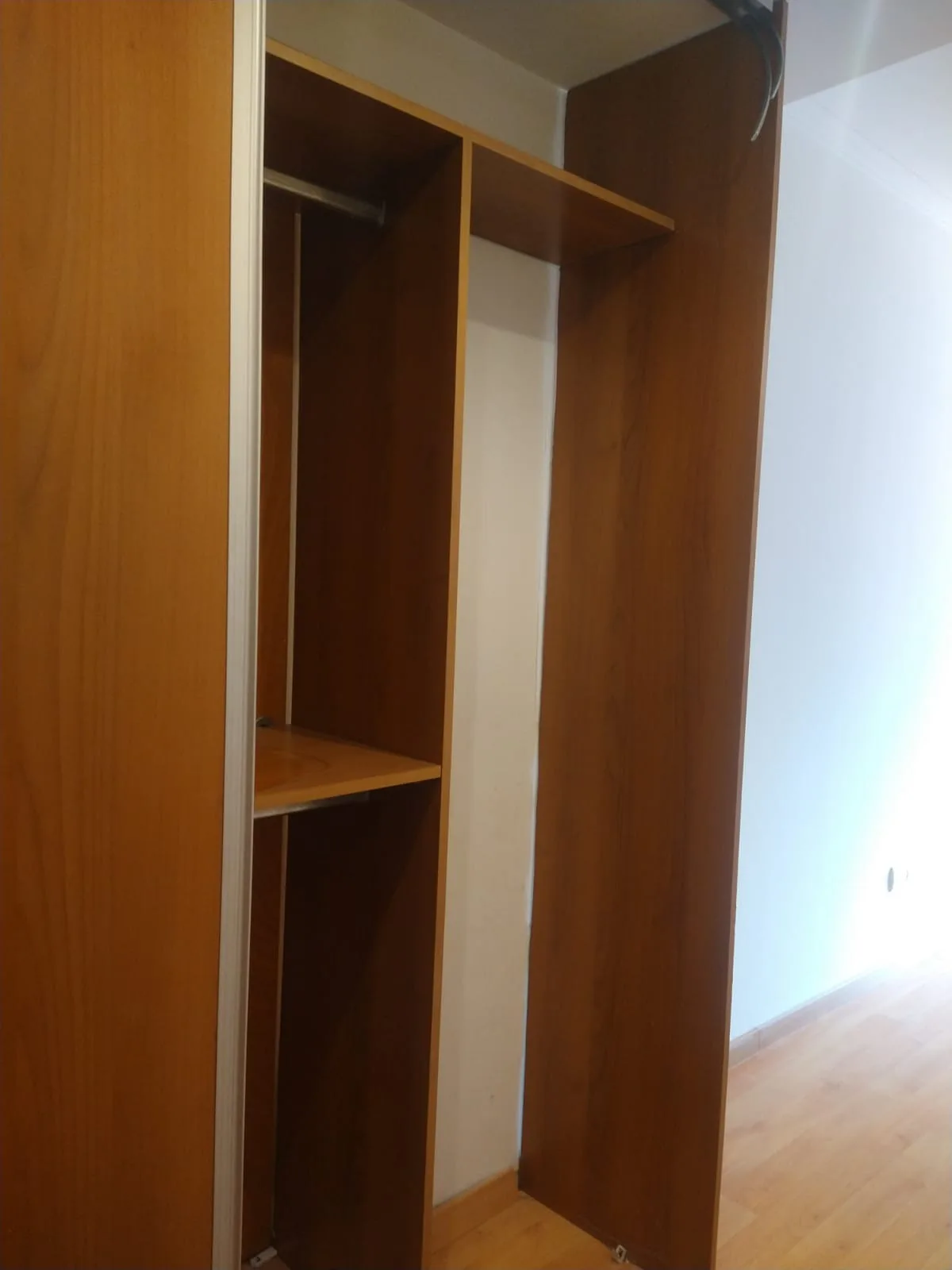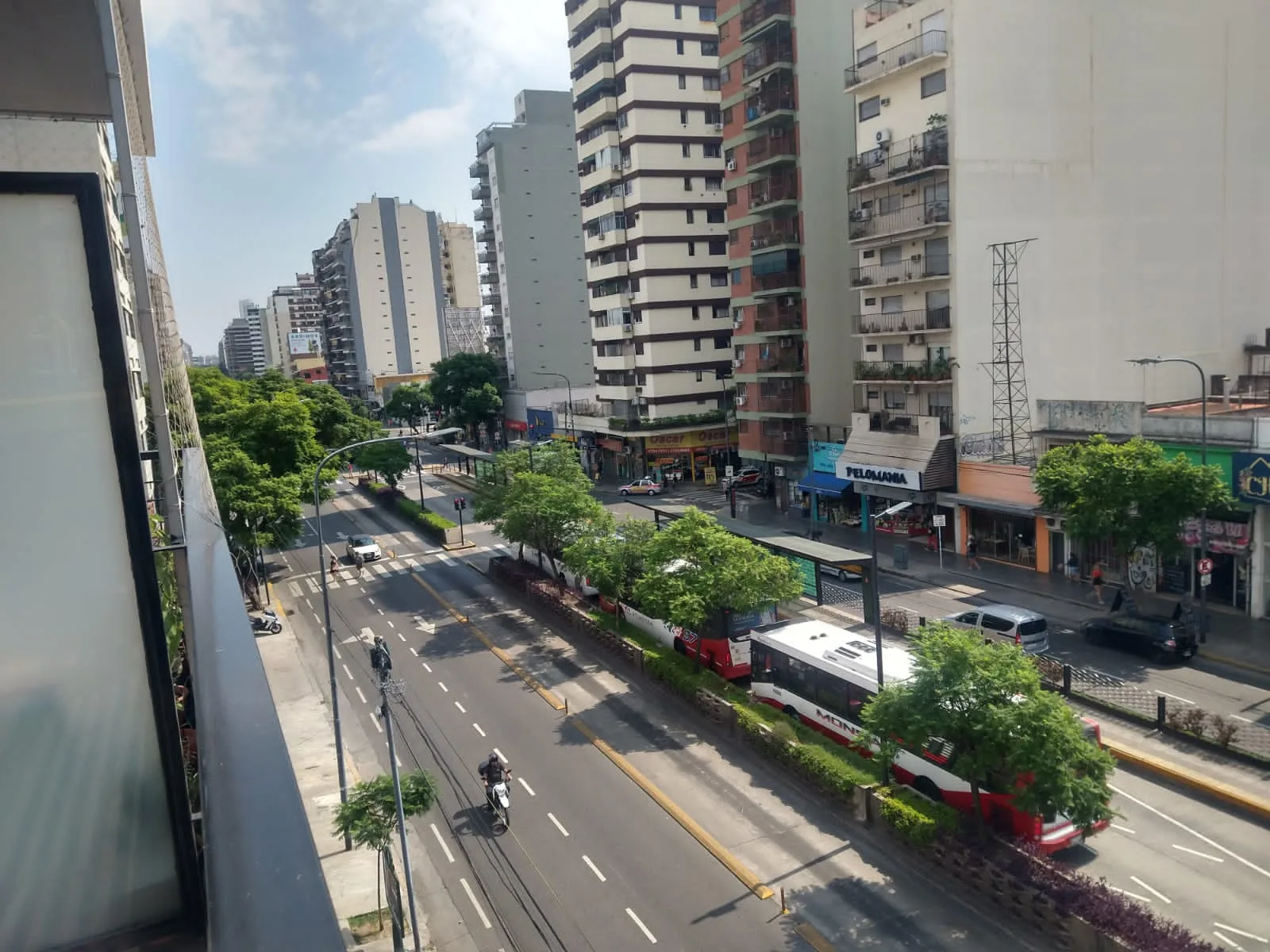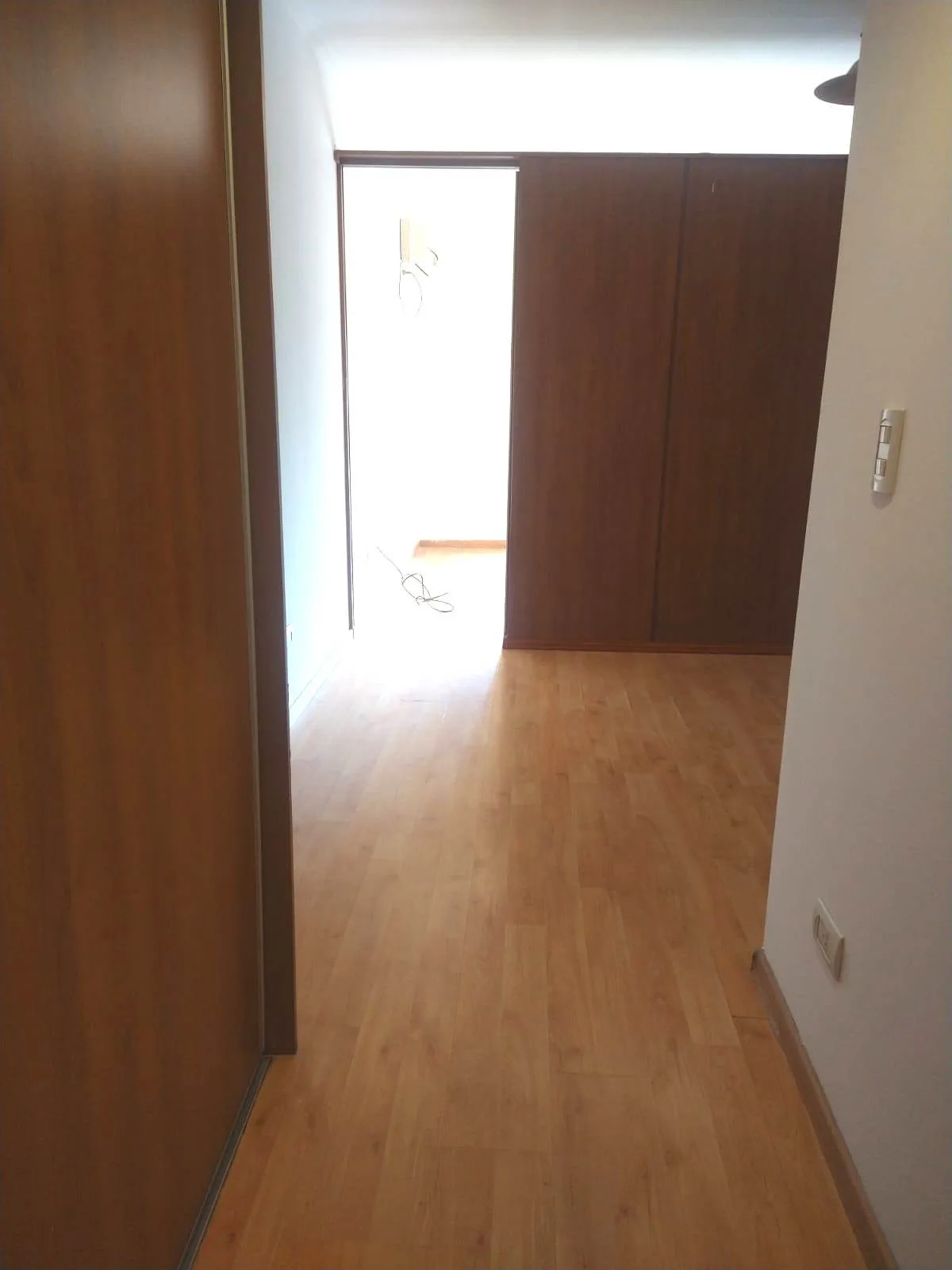 Studio apartment for rent in Núñez. Front-facing unit with open views and a fitted integrated kitchen with electric cooktop. It has a full bathroom and split air conditioning (hot and cold). Wardrobe with interior fittings separates the main room; the partition is removable.