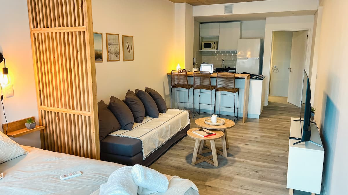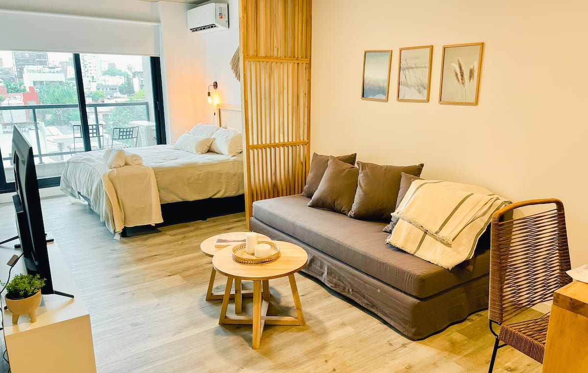 Brand-new studio apartment in Núñez. Located one block from Avenida del Libertador and about 300 metres from the Estadio River Plate. Equipped with a Smart TV and WiFi. The listing is described as ten minutes from the train.