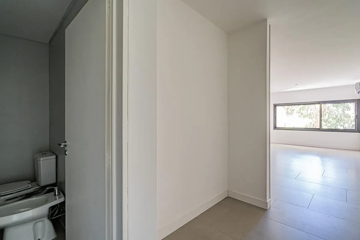 Studio apartment brand new in Núñez, ground-floor unit facing the interior courtyard (contrafrente). It is on the first floor and includes an electric kitchenette; an air-conditioning unit is installed. Building fees are $150.000. In accordance with Law 5115, the property is accessible for people with reduced mobility or physical disabilities. Located at Ramallo 1600, about half a block from Av. del Libertador.